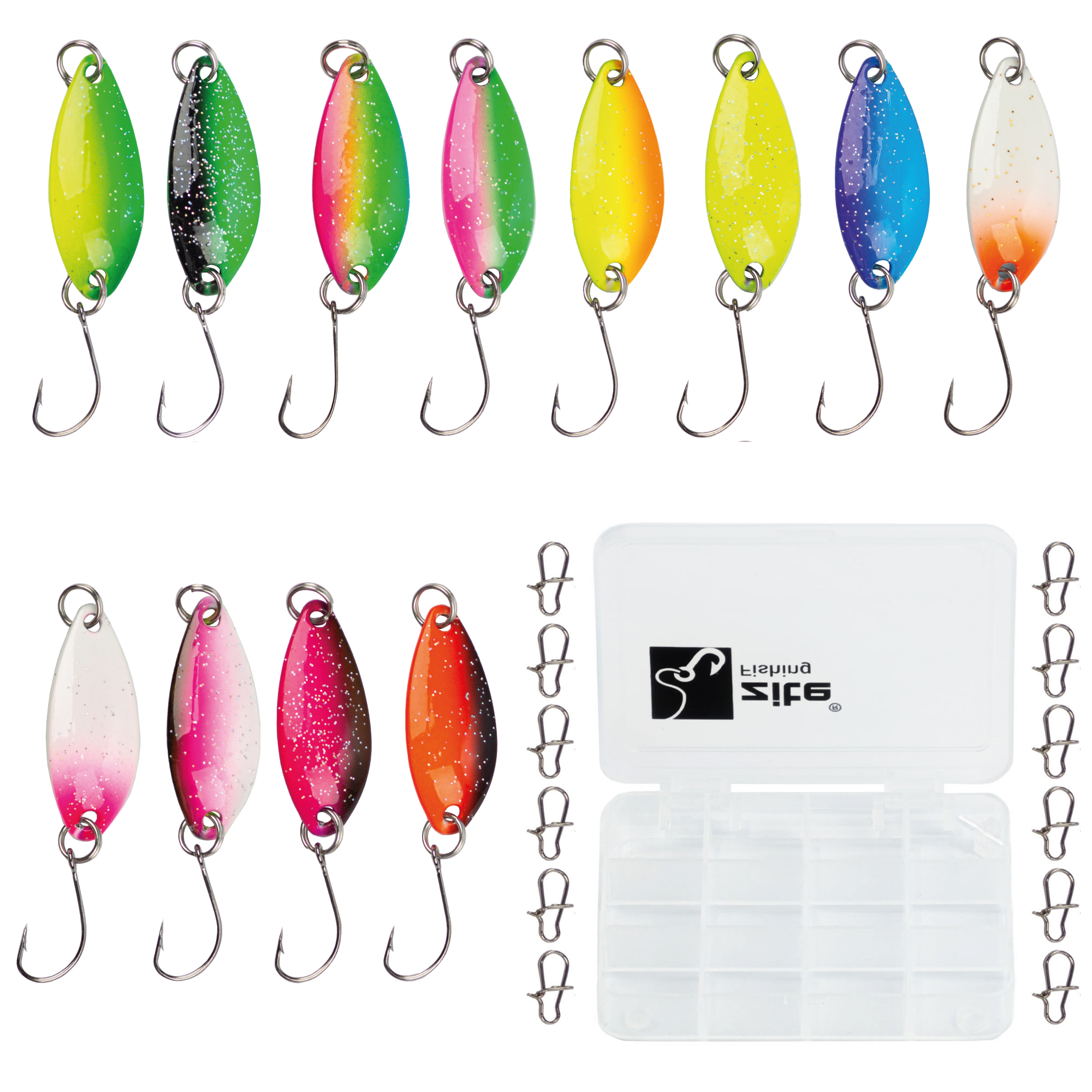 Zite Fishing Trout Spoon Forellenköder Set Beidseitig Farbig 12 Stück in Box