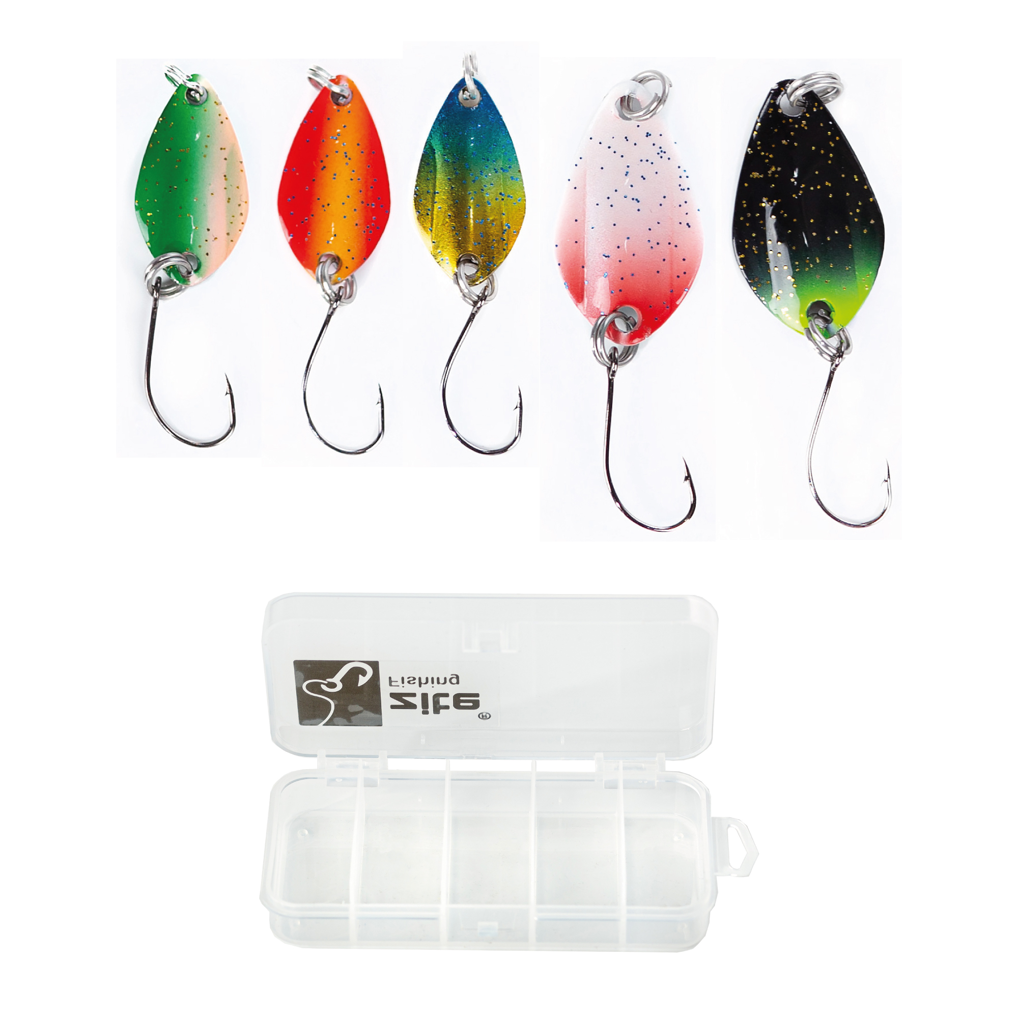 Mini Forellen Spoon Set 5-teilig 1,2-2g mit Köderbox Zite Fishing
