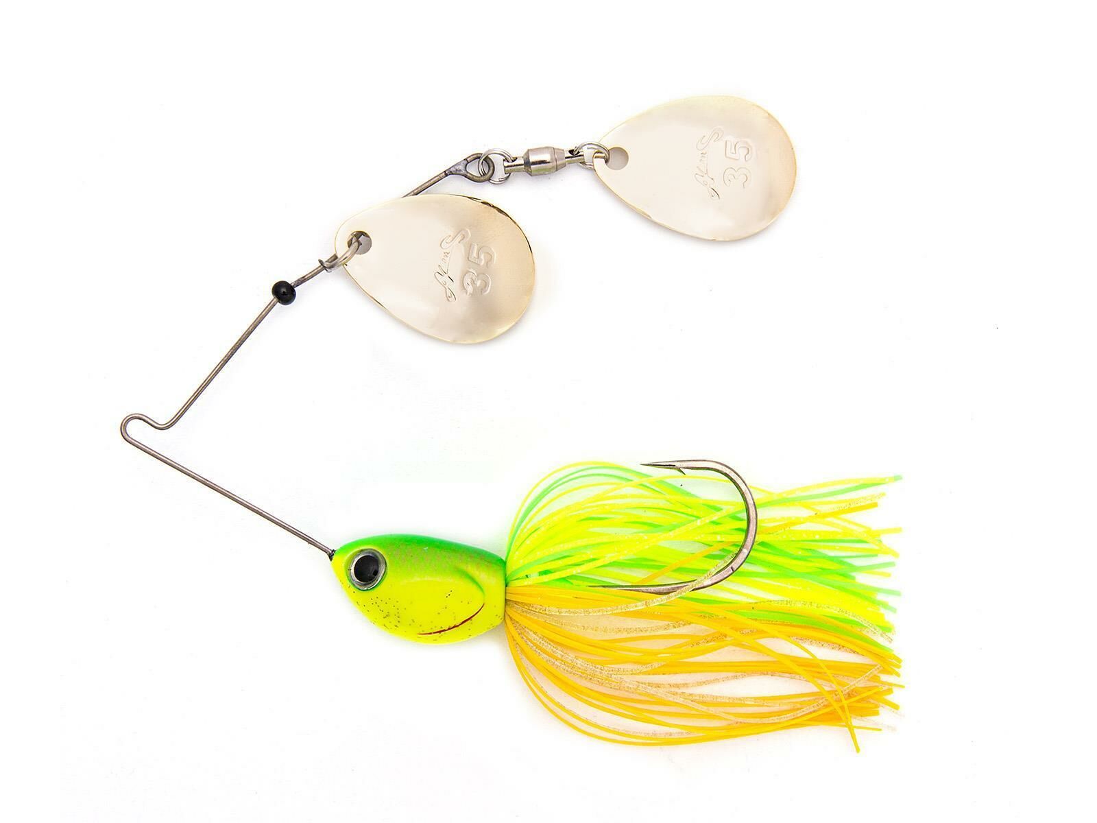 Der NORIES Wind Range Spinnerbait ist für das Fischen bei besonders windigen Bedingungen entwickelt worden. Sein kompaktes Volumen macht es einfach, ihn bei Seitenwind oder sogar gegen den Wind auszuwerfen. Sein gebogener Arm sorgt zudem für einen stabilen Lauf. Der WIND RANGE ist mit zwei Colorado-Blättern ausgestattet, die für deutliche Vibrationen sorgen. Um den Windwiderstand möglichst gering zu halten, wurden zusätzlich die Skirts des Spinnerbaits, im Gegensatz zu anderen Modellen, gekürzt.