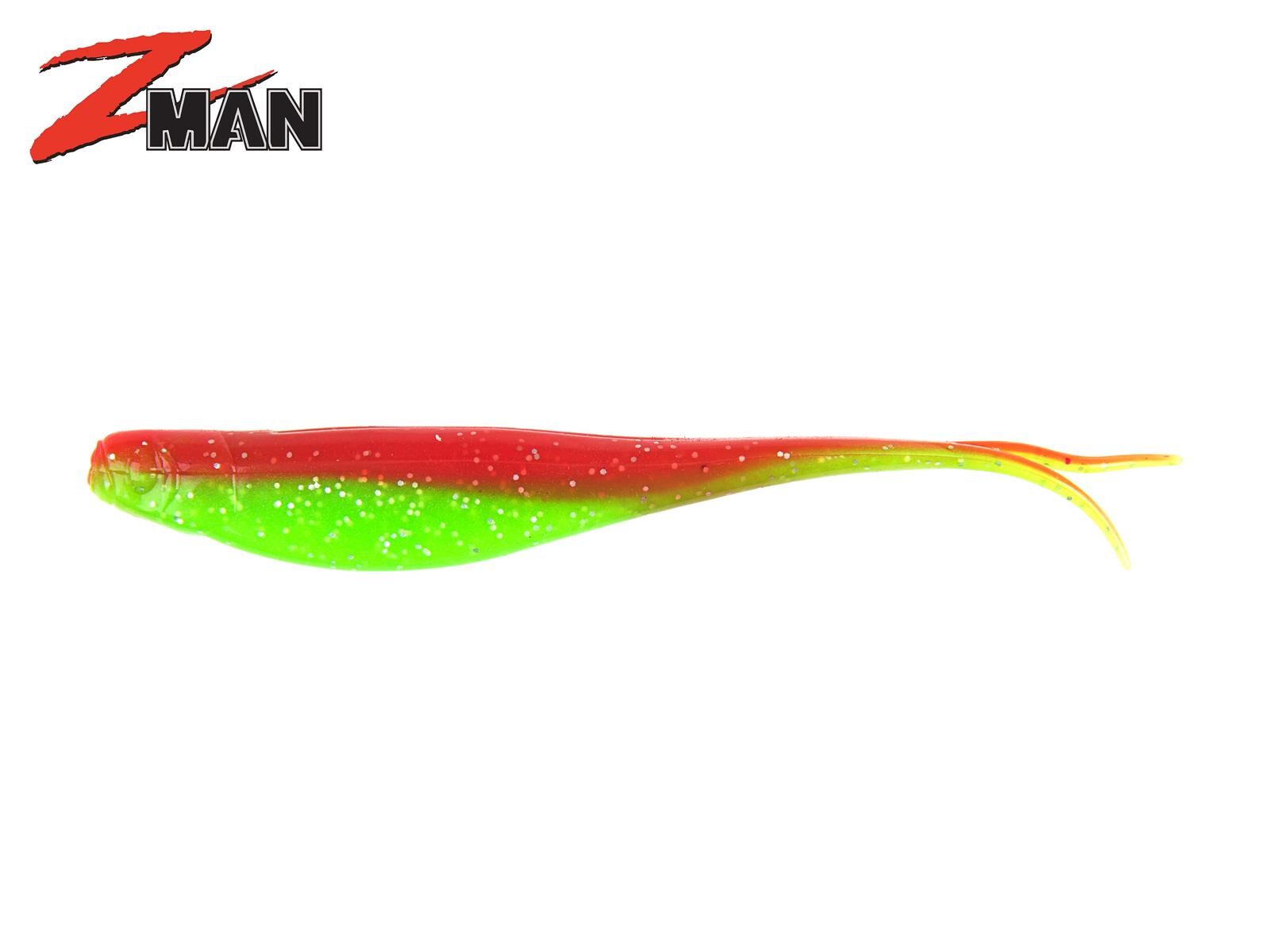 Die 3.75″ StreakZ von Z-Man imitieren ein kleines Fischchen und können vielseitig eingesetzt werden. Am besten eignen sie sich als kleine Softjerkbaits am Weighted WideGap-Haken, am Drop Shot Rig oder auch am Jigkopf. Die 3.75″ StreakZ haben einen Schlitz im Bauch, damit Widegap-Haken besser fassen und einen kleinen V-Tail. Ein sehr schöner Gummifisch für die gezielte Angelei auf Barsch und Zander! Alle Z-Man Gummiköder sind aus ElaZtech gefertigt. Dieses Material ist super-weich und ermöglicht somit ein unvergleichliches Köderspiel. Die Z-Man Gummifische sind extrem elastisch und dennoch reißfest, so dass die Köder rund 10x so haltbar sind wie reguläre Gummifische. Die Gummimischung ist auftreibend, so dass unbeschwerte Köder im Wasser schwimmen. Alle Z-Man Köder sind absolut ungiftig und frei von PVC, Plastisol oder Phtalaten. ACHTUNG: Bitte Z-Man Gummiköder nicht zusammen mit Weichplastik-Ködern anderer Hersteller lagern. Entweder in der Original-Tüte aufbewahren oder eine separate Tacklebox nur für ElaZtech-Köder anlegen.