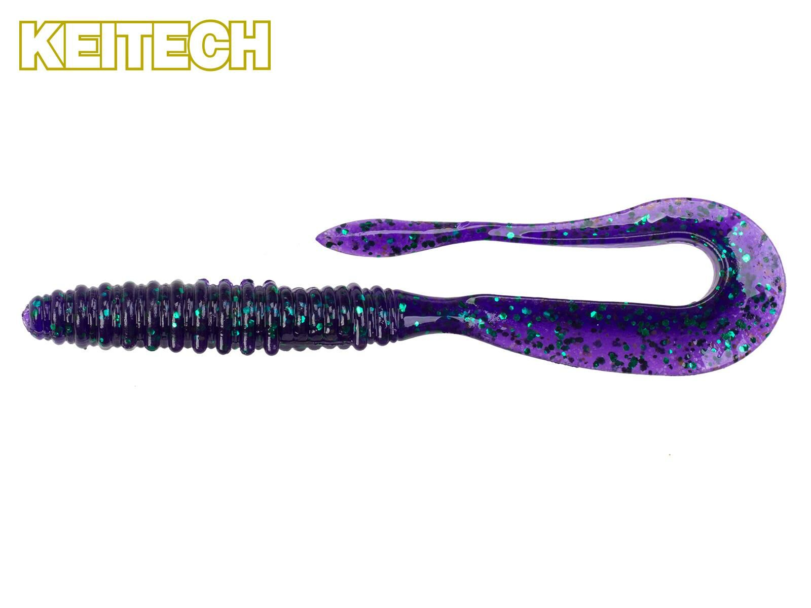 Der 4.5″ Mad Wag Slim von KEITECH ist ein gesalzener und mit Tintenfisch-Aroma versehener Gummiwurm, der eine gelungene Mischung aus Gummiwurm und Twister darstellt. Der relativ kräftige Twisterschwanz erzeugt auch bei langsamer Führung reichlich Druckwellen und verleiht dem Mad Wag Slim einen leicht flankenden Lauf. Der gerippte Körper hat in der Mitte eine Aussparung, um dort die Hakenspitze zu positionieren. Mit so geschützter Hakenspitze (PGS Point Guard System) kann der Mad Wag Slim auch in extrem verkrauteten, hindernisreichen Gewässerbereichen gefischt werden. Der 4.5″ Mad Wag Slim ist vielseitig einsetzbar, sei es am Jig, am Texas-, Carolina- oder Drop-Shot-Rig bringt er zuverlässig Bisse und ist insbesondere auf Barsch, Zander und im Salzwasser ein extrem fängiger Gummiwurm!
