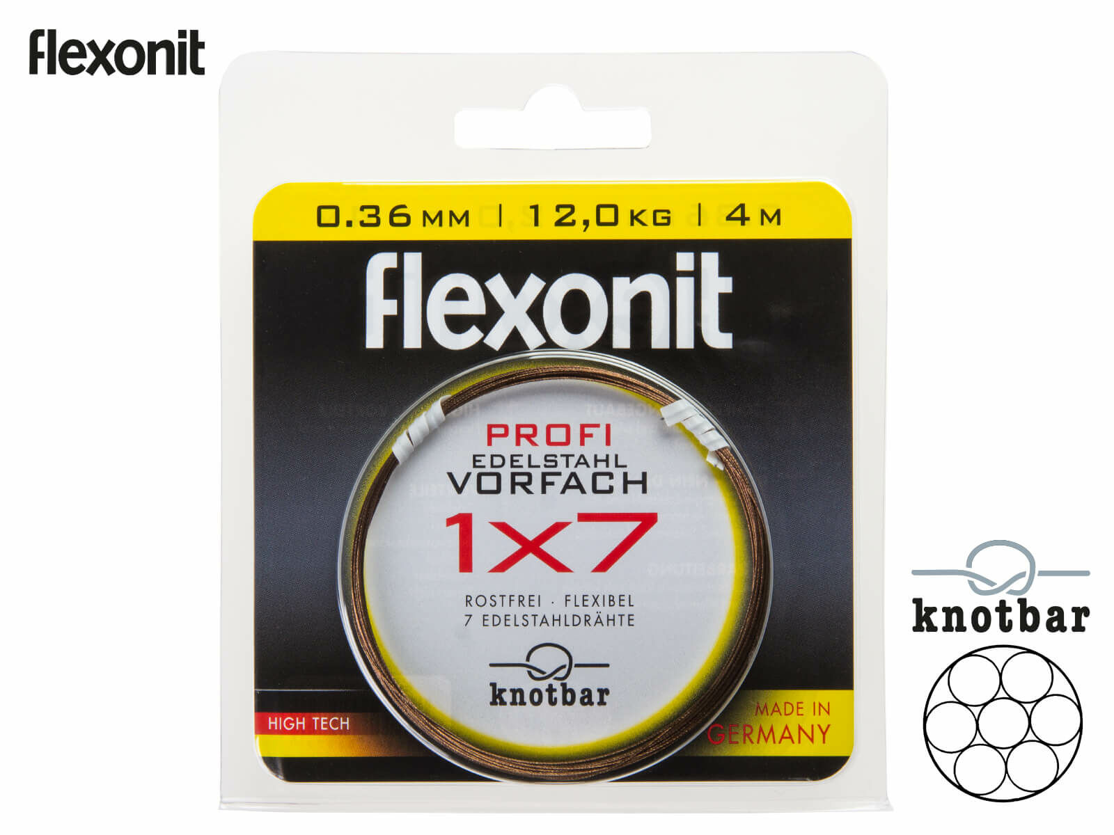 Das flexonit Stahlvorfach 1×7 ist aus 7 einzelnen Fäden hergestellt. Knotbar, rostfrei, salzwasserbeständig. Fasert nicht aus, reflektionsfreie Oberfläche und starke Abriebfestigkeit. Das flexonit 1×7 Stahlvorfach eignet sich sehr gut zum Angeln mit mittleren und großen Gummiködern, für Wobbler und Spinnerbaits und natürlich zum Bau von Stinger-Vorfächern.