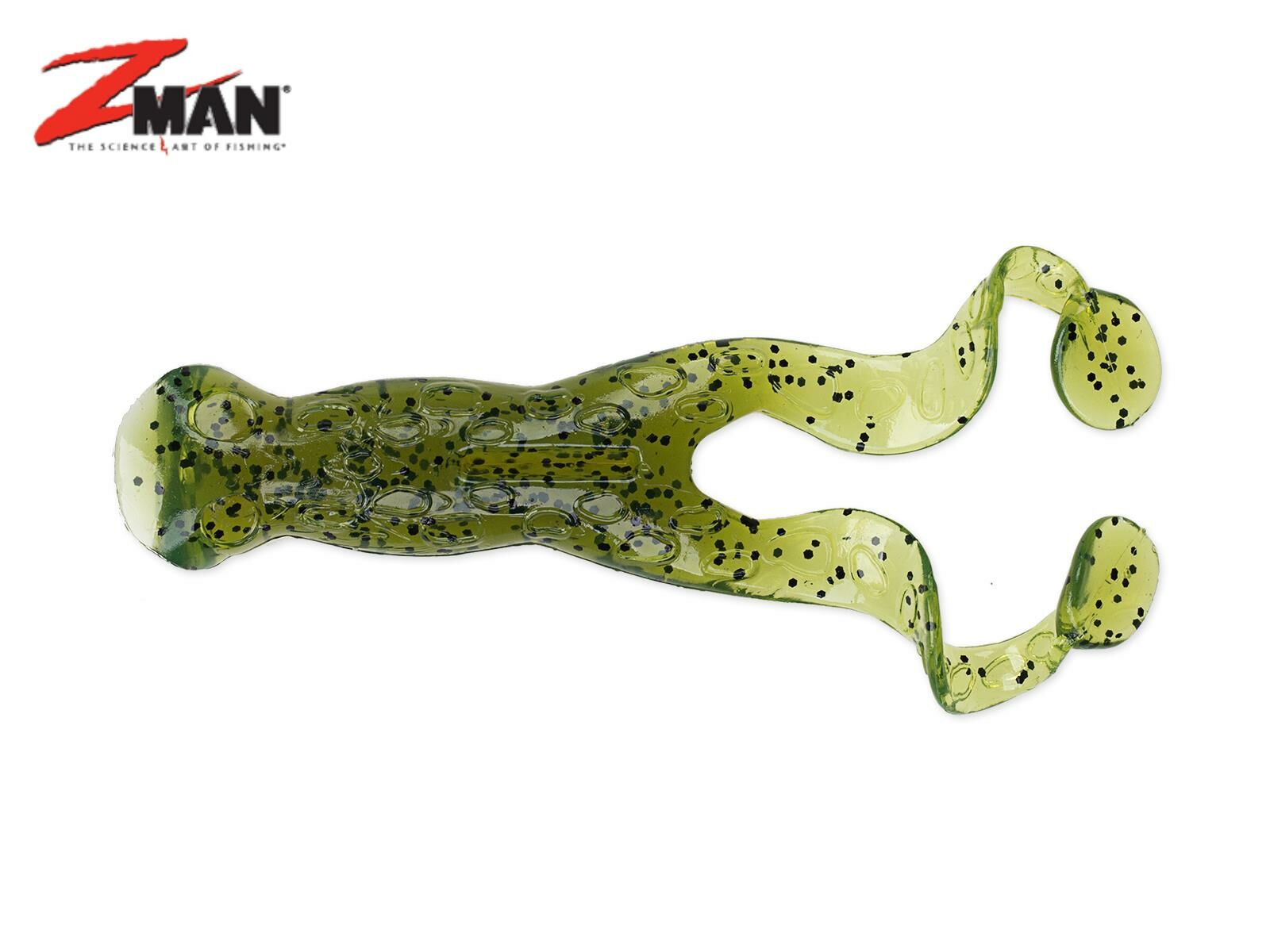 Die 4″ Pop FrogZ von Z-Man sind eine ungewöhnliche Mischung aus Popper, Frosch und Doppelschwanztwister. Sie werden hergestellt aus einer schwimmenden Gummimischung und bleiben bei Verwendung unbeschwerter Offset-Haken zuverlässig an der Oberfläche. Die Frösche lassen sich sehr vielseitig führen und mit regelmäßigen Rucken sogar zu einem Links-Rechts-Lauf animieren. Der nach innen gewölbte Maulbereich sorgt für Blasenbildung und lässt Wasser aufspritzen, die Paddelbeine spielen lebhaft in der Vorwärtsbewegung. Definitiv ein Leckerbissen für Schwarzbarsch, Hecht und große Barsche! Alle Z-Man Gummiköder sind aus ElaZtech gefertigt. Dieses Material ist super-weich und ermöglicht somit ein unvergleichliches Köderspiel. Die Z-Man Gummifische sind extrem elastisch und dennoch reißfest, so dass die Köder rund 10x so haltbar sind wie reguläre Gummifische. Die Gummimischung ist auftreibend, so dass unbeschwerte Köder im Wasser schwimmen. Alle Z-Man Köder sind absolut ungiftig und frei von PVC, Plastisol oder Phtalaten. ACHTUNG: Bitte Z-Man Gummiköder nicht zusammen mit Weichplastik-Ködern anderer Hersteller lagern. Entweder in der Original-Tüte aufbewahren oder eine separate Tacklebox nur für ElaZtech-Köder anlegen.