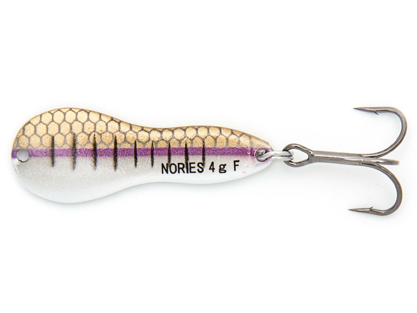 Der 4g Metal Wasaby von NORIES ist ein kleiner Jigging Spoon, der sehr vielseitig gefischt werden kann. Ein Einsatzgebiet ist das Beangeln grundnah stehender Fische wie z.B. Barsch und Zander. Dabei wird der Metal Wasaby über den Grund gezupft, wobei er rotierend und seitlich ausbrechend zum Grund zurück trudelt. Aber auch an der Oberfläche ist der Metal Wasaby insbesondere für Rapfen eine Bank. Bei schneller Führung bricht er immer wieder plätschernd durch die Wasseroberfläche und macht die Räuber auf sich aufmerksam.