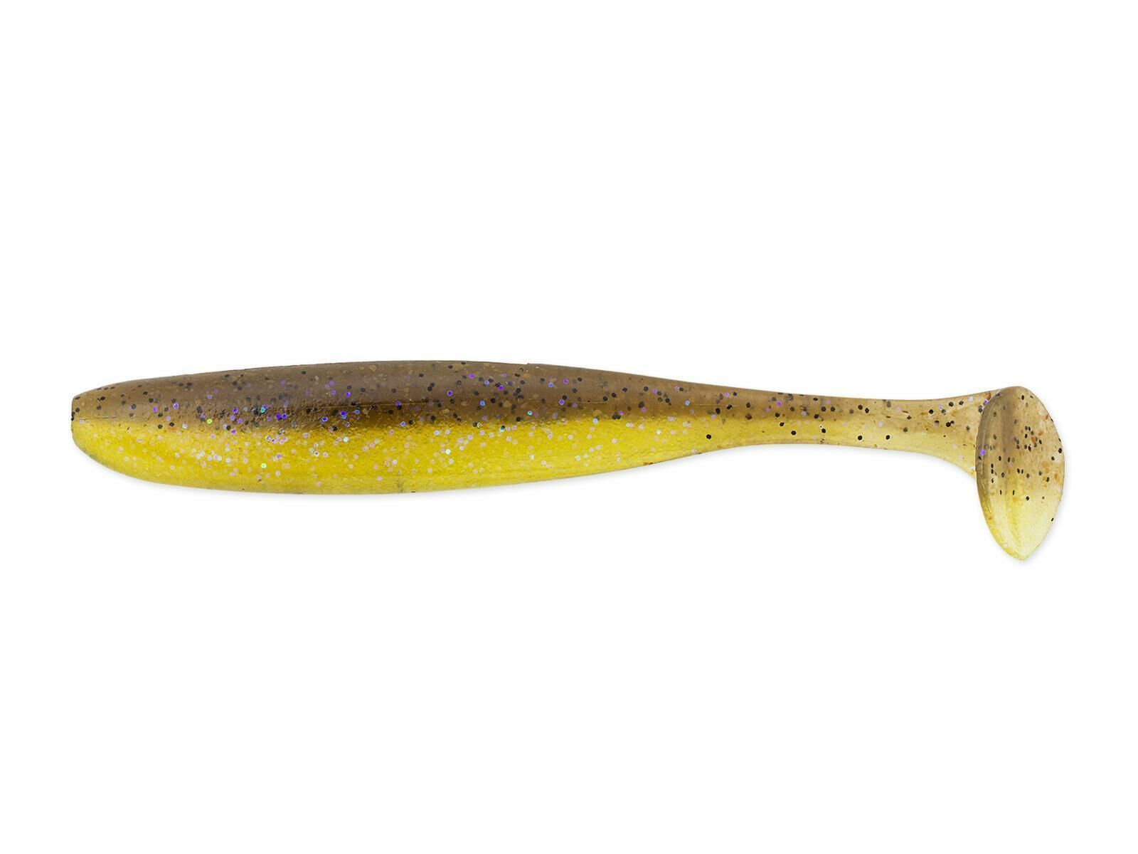 Der 5″ Easy Shiner von KEITECH ist eine gelungene Mischung aus Shad Impact und Swing Impact. Der flache Körper flankt im Takt des Schaufelschwanzes und lässt die Seiten immer wieder aufblitzen. Die Gummimischung im unteren Bereich des Easy Shiners ist sehr stark gesalzen und verleiht dem Gummifisch selbst ohne zusätzliche Beschwerung einen sehr stabilen Lauf. Auf der Ober- und Unterseite befinden sich Aussparungen im Gummi, damit der Easy Shiner perfekt an WideGap- und Offset-Haken montiert werden kann. Die Verbindung zum Schaufelschwanz ist extra dünn gehalten, damit der Easy Shiner selbst bei langsamster Einholgeschwindigkeit zuverlässig spielt. Die Easy Shiner sind gesalzen und mit Tintenfisch-Aroma versehen. Ein weiterer Köder aus dem Hause KEITECH, der Barsche und Zander schwach werden lässt!