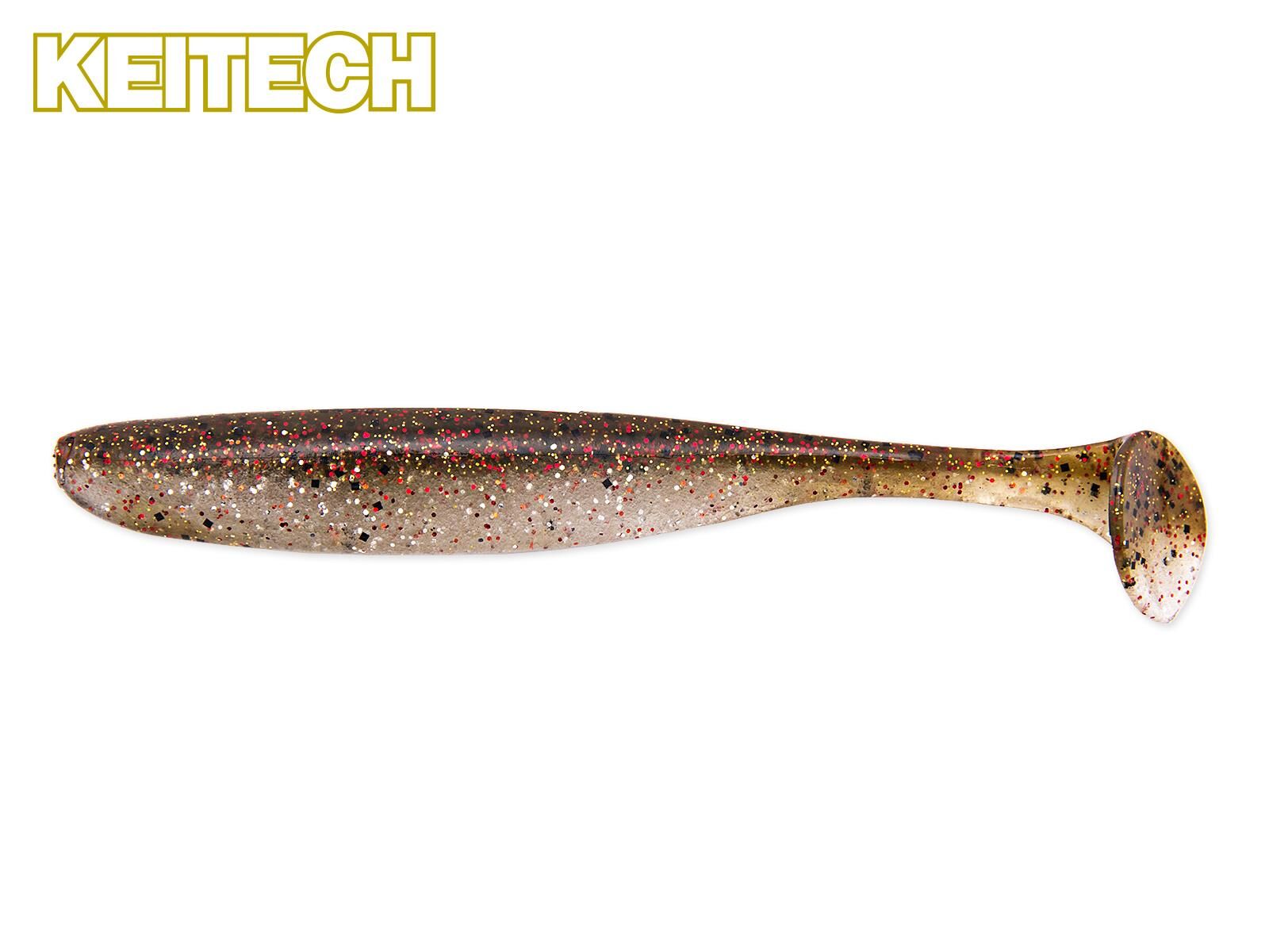 Der 5″ Easy Shiner von KEITECH ist eine gelungene Mischung aus Shad Impact und Swing Impact. Der flache Körper flankt im Takt des Schaufelschwanzes und lässt die Seiten immer wieder aufblitzen. Die Gummimischung im unteren Bereich des Easy Shiners ist sehr stark gesalzen und verleiht dem Gummifisch selbst ohne zusätzliche Beschwerung einen sehr stabilen Lauf. Auf der Ober- und Unterseite befinden sich Aussparungen im Gummi, damit der Easy Shiner perfekt an WideGap- und Offset-Haken montiert werden kann. Die Verbindung zum Schaufelschwanz ist extra dünn gehalten, damit der Easy Shiner selbst bei langsamster Einholgeschwindigkeit zuverlässig spielt. Die Easy Shiner sind gesalzen und mit Tintenfisch-Aroma versehen. Ein weiterer Köder aus dem Hause KEITECH, der Barsche und Zander schwach werden lässt!