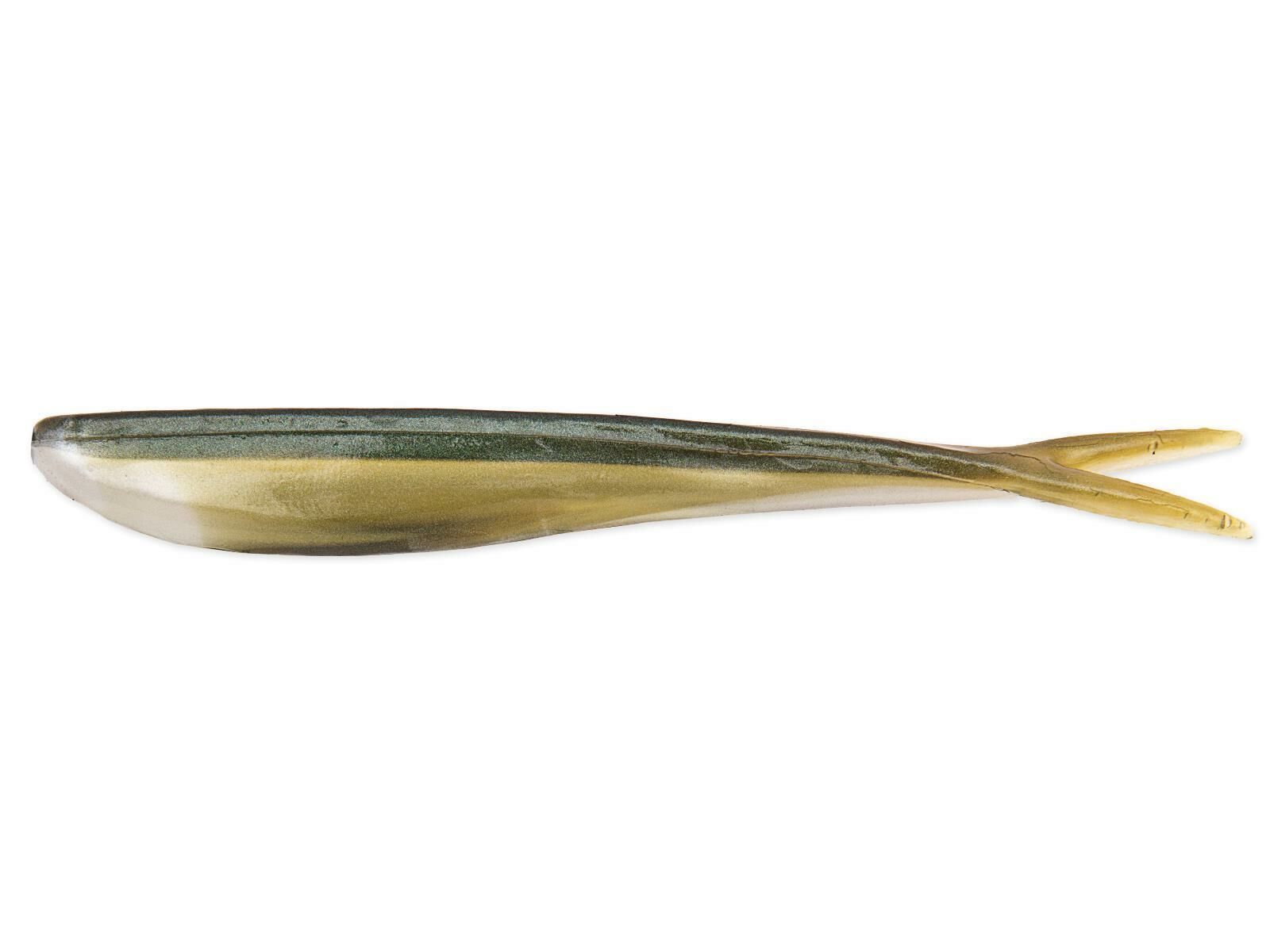 Der Fin-S Fish von Lunker City ist DER Vertikalangel-Köder schlechthin! Aber auch geworfen bringt er regelmässig schöne Fische. Dazu wird der Fin-S Fish ganz normal mit einem Jigkopf gefischt. Bei jedem Anzupfen und bei jedem Auftreffen des Jigkopfs auf dem Grund wippt der Schwanz hin und her, ähnlich wie bei einem flüchtendem Beutefisch. Die natürliche Körperform und die große Farbauswahl lassen eigentliche keine Wünsche offen und man ist für jede Situation am Wasser bestens gerüstet. Der Fin-S Fish kann natürlich auch mit einem Offset-Haken als Softjerkbait angeködert werden. Er wird mit leichten Zupfern und Schlägen geführt, so dass er wie ein verletztes Beutefischchen unbeholfen durchs Wasser ‚irrt‘. Dabei kann der Köder extrem langsam geführt werden, da er im Wasser schwebt, bzw. nur ganz langsam absinkt. Gerade in krautigen und hindernisreichen Gewässern ist das Twitchen eine der erfolgreichsten Methoden. Da der Haken fast komplett im Köder verborgen ist, sind Köderverluste oder Krautfahnen (fast) passé! Besonders in viel beangelten Gewässern sind die Räuber weniger mißtrauisch gegenüber Ködern ohne Schaufelschwanz!