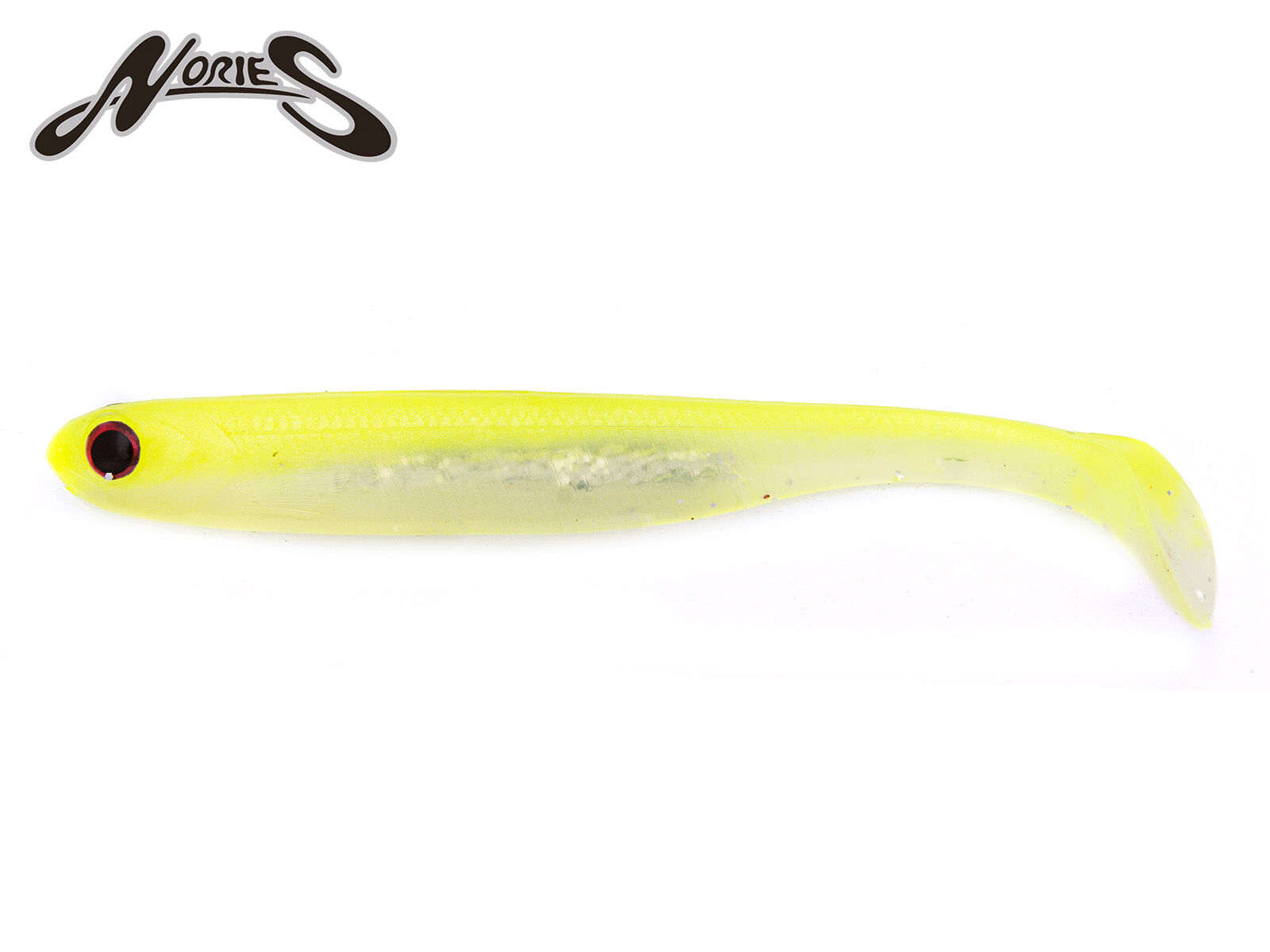 Der 5″ Spoon Tail Live Roll von NORIES ist ein sehr realistisch gestalteter Swimbait der neuesten Generation. Die Gummimischung des Spoon Tail Live Roll ist im Vergleich zu seinem Bruder, dem Spoon Tail Shad, etwas fester gewählt und mit einem kleinen Luftkanal im Inneren des Köders versehen, der für zusätzliche Aktion beim Lauf sorgt. Auch der Spoon Tail Live Roll hat ein sehr natürliches Aussehen. Er kann sowohl an Jigköpfen, an Weighted WideGap-Haken oder am Texas Rig gefischt werden. Durch die zwar weiche, aber im Vergleich zum Spoon Tail Shad etwas festere Gummimischung überträgt der Schwanzteller des Spoon Tail Live Roll seine starke Bewegung fast 1:1 auf den ganzen Köder. Die rollende, flankende Bewegung fällt dadurch etwas stärker und ausladender aus als beim Spoon Tail Shad. Die Frequenz des Flankens ist bei diesem Spoon Tail Modell etwas geringer, die Bewegung und somit die Druckwellen aber noch stärker. Auch die Flanken des Spoon Tail Live Roll blitzen dabei immer wieder auf. Die eingegossenen Glitterpartikel und die Augen sorgen zudem für ein sehr natürliches Aussehen. Der 5″ Spoon Tail Live Roll ist vor allem für große Barsche, Zander und Hechte zu empfehlen!