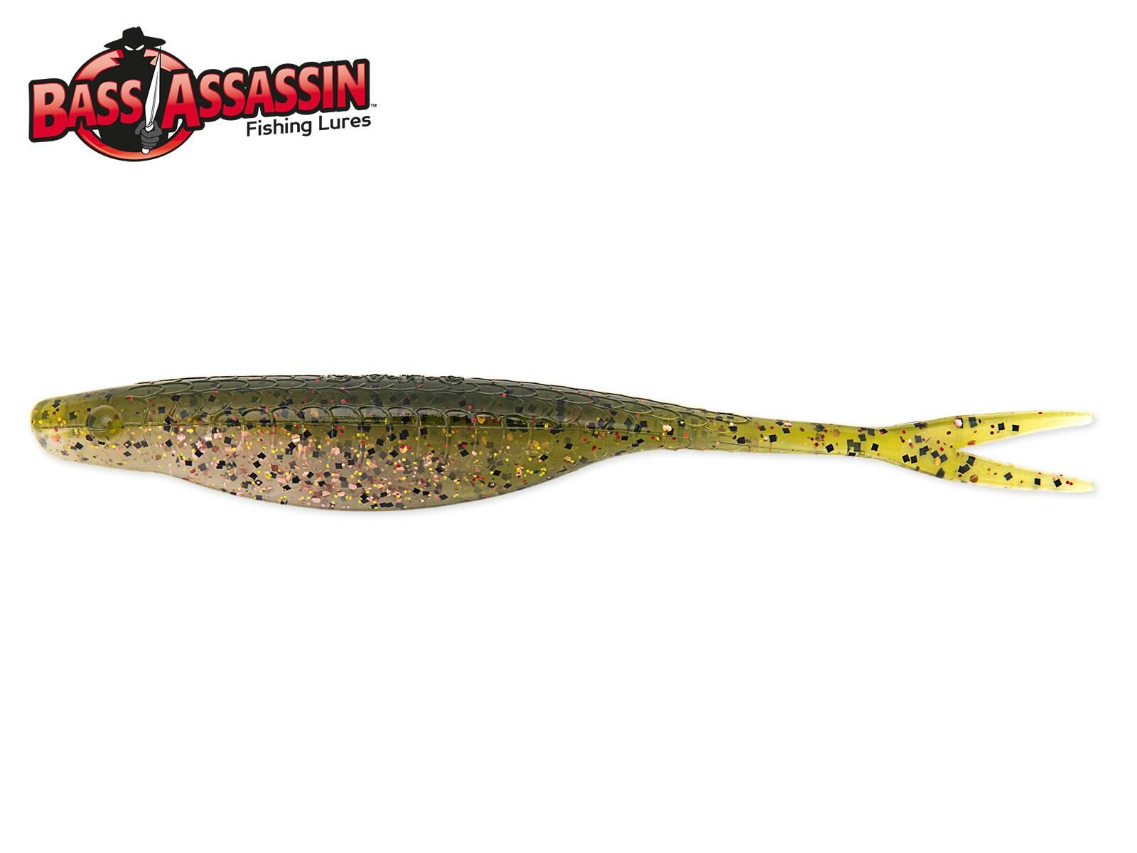 Die 5″ Vapor Shads von Bass Assassin haben einen Schlitz auf der Bauchseite, um krautfrei an WideGap-Haken gefischt werden zu können. Durch ihre nach oben breiter werdende Körperform kippeln sie verführerisch beim Absinken und die weiche Gummimischung verleiht ihnen insgesamt eine sehr lebhafte Aktion. Die Vapor Shads eignen sich somit bestens als Softjerkbait oder als Köder am Texas Rig. Aber auch am Jigkopf lassen sie sich sehr gut einsetzen, z. B. beim Jiggen oder Vertikalangeln. Die 5″ Vapor Shads sind alle mit BANG Attractant und Salz (Liquid Salt) aromatisiert. Ein sehr schöner V-Tail-Gummifisch für große Barsche und vor allem für Zander!