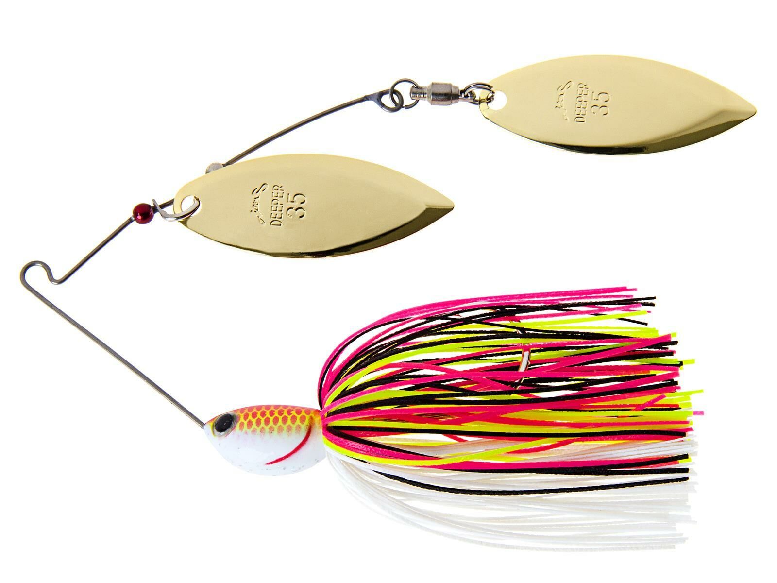 Der NORIES Deeper Range Spinnerbait ist, wie der Name schon sagt, für tieferes Wasser konzipiert. Die einzigartige Drahtstellung sorgt dafür, dass der Spinnerbait tiefer läuft und nicht so schnell aufsteigt wie andere Köder seiner Art. Wie alle NORIES Spinnerbaits, ist er ideal ausbalanciert, um ein stabiles Laufverhalten zu garantieren. Ausgestattet mit zwei Willow Blades sorgen seine Lichtreflexe für große Aufmerksamkeit unter den Räubern und animieren auch träge Fische zum Biss. Die verbauten Haken sind extrem scharf, stabil und reduzieren so die Fehlbissquote.