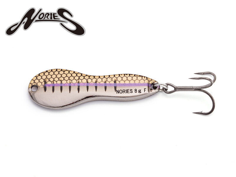 Der 8g Metal Wasaby von NORIES ist ein kleiner Jigging Spoon, der sehr vielseitig gefischt werden kann. Ein Einsatzgebiet ist das Beangeln grundnah stehender Fische wie z.B. Barsch und Zander. Dabei wird der Metal Wasaby über den Grund gezupft, wobei er rotierend und seitlich ausbrechend zum Grund zurück trudelt. Aber auch an der Oberfläche ist der Metal Wasaby insbesondere für Rapfen eine Bank. Bei schneller Führung bricht er immer wieder plätschernd durch die Wasseroberfläche und macht die Räuber auf sich aufmerksam.