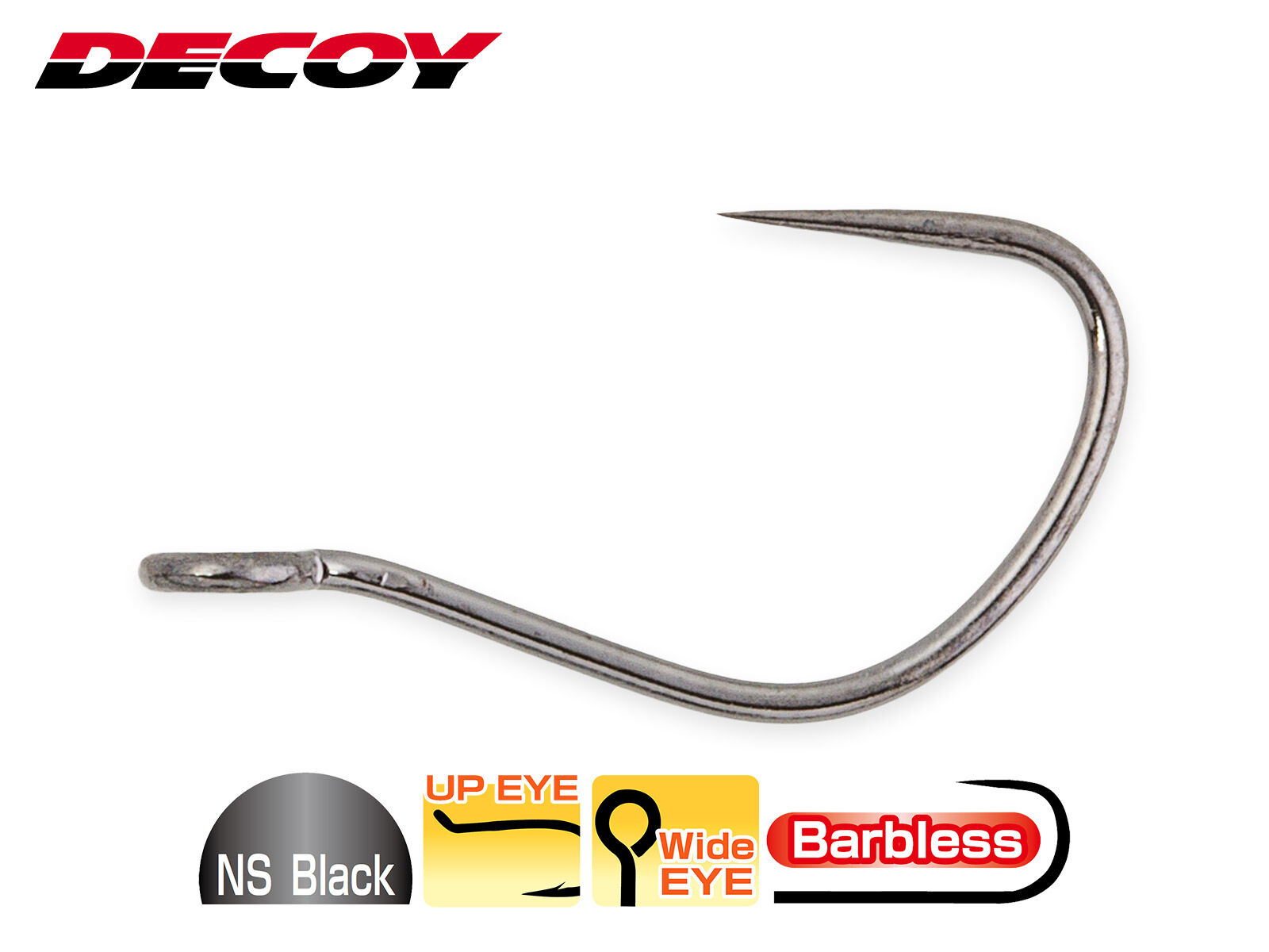 Der Area Hook Type VII Front AH-7 von Decoy ist ein kleiner, aber erstaunlich stabiler Spezialhaken für die Spoon-Angelei am Forellensee. Die Bezeichnung „Front“ im Namen steht für Frontbefestigung. Soll bedeuten: Dieser Haken ist von seiner Formgebung dafür gedacht, oben am Spoon angebracht zu werden – also an dem Sprengring, an den wir auch die Schnur knoten oder den Karabiner einhängen. Der Haken liegt dann in der Wölbung des Blinkers. Bei Grundkontakt sammelt er dadurch kaum Blätter oder Kraut ein. Der Area Hook Type VII Front AH-7 kommt ohne Widerhaken aus und besitzt ein extra großes Öhr.