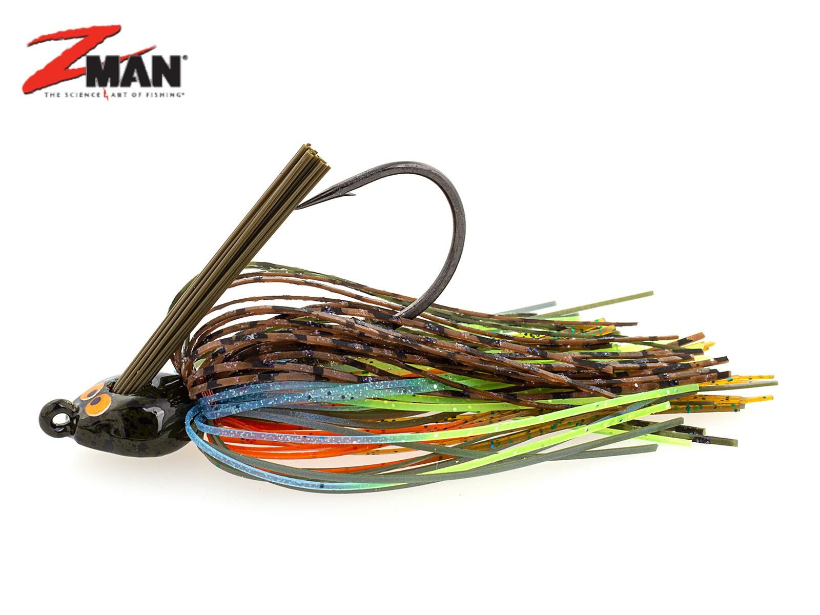 Bei dem CrossEyeZ Snakehead Swim Jig aus dem Hause Z-Man handelt es sich um einen mittelgroßen Skirted Jig, der keine Wünsche offen lässt. Der hervorragend verarbeitete Jig verfügt über einen von Hand gebundenen Skirt aus Silikon, ist bewaffnet mit einem großfischtauglichen VMC-Haken der Größe 4/0 und bietet einen pfiffigen Lure Keeper auf dem Schenkel, der nicht nur Z-Man-Gummis sicher hält. Die an eine Schlange erinnernde Kopfform lässt den Jig sehr gut durch Pflanzen und Gehölz gleiten. Der Haken wird dabei effektiv abgeschirmt von einem Weed Guard aus vielen dünnen Kunststoffantennen.