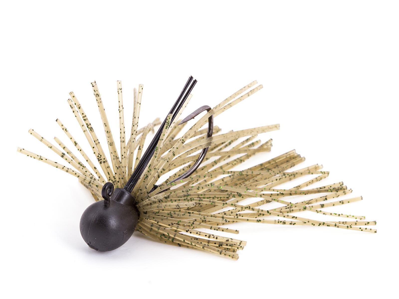 Dieser kleine Finesse Jig mit Tungsten Gewicht lässt sich nahezu hängerfrei fischen. Der Jighaken ist stabil genug, um auch größere Fische sicher zu landen. Gerade wenn die Fische recht launisch sind und nicht so richtig beißen wollen, sollte man zum Guard Spin Jig greifen! Ideale Trailer sind Krebse, Würmer aber auch die Kombination mit Gummifischen in 2″ und 3″ ist sehr erfolgreich. Der Guard Spin Jig arbeitet besonders gut bei langsamer Köderführung mit kleinen Sprüngen oder beim Schleifen über den Grund. Haken-Größe 2 von Decoy Bleifrei Von Hand eingeklebter Weedguard