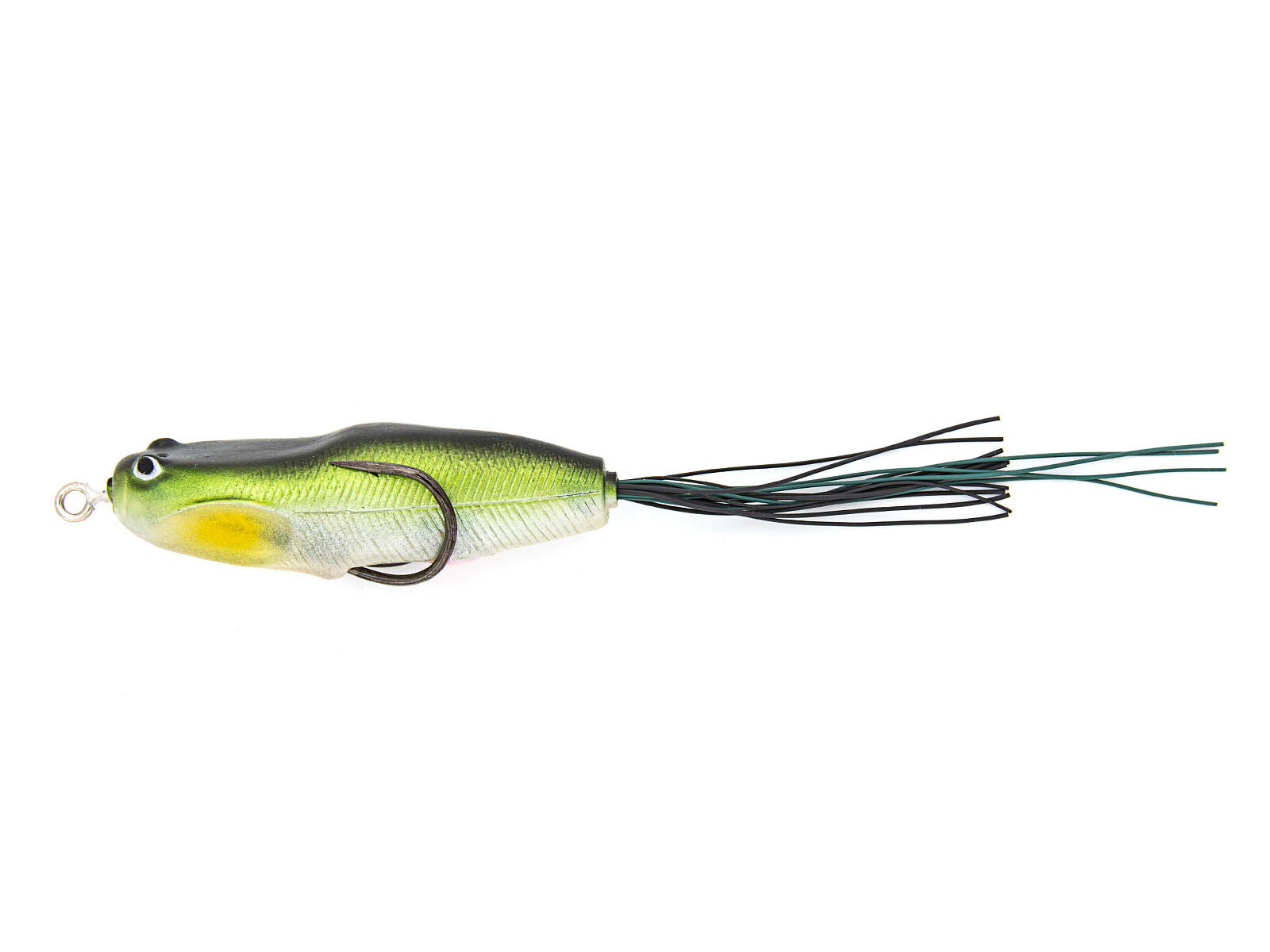 Der Hoshokuon von NORIES ist ein Oberflächenköder, der eine Mischung aus Popper und Pencil Bait darstellt. Seitlich am Kopf befinden sich kleine Einbuchtungen, die bei jedem Zupfer das Wasser spritzen lassen und wie für Popper üblich ein leichtes Platsch-Geräusch erzeugen. In Kombination mit dem leichten Zick-Zack-Lauf spricht er vorrangig raubende Rapfen und große Barsche an. Da die Haken ganz eng am Körper anliegen, kann der Hoshokuon problemlos über Kraut und Seerosen geführt werden, ohne dass die Gefahr eines Hängers besteht. Dennoch garantiert der weiche Körper bei einem Biss das Eindringen des scharfen Hakens im Fischmaul.