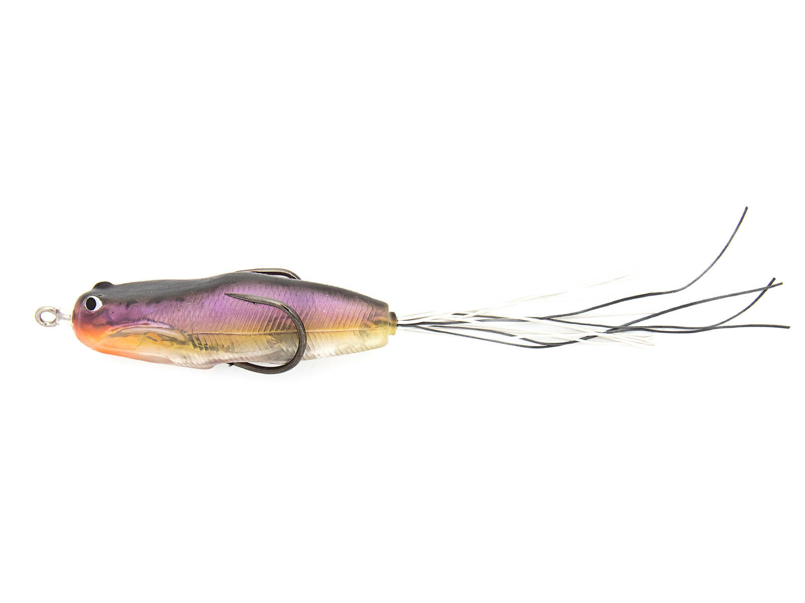 Der Hoshokuon von NORIES ist ein Oberflächenköder, der eine Mischung aus Popper und Pencil Bait darstellt. Seitlich am Kopf befinden sich kleine Einbuchtungen, die bei jedem Zupfer das Wasser spritzen lassen und wie für Popper üblich ein leichtes Platsch-Geräusch erzeugen. In Kombination mit dem leichten Zick-Zack-Lauf spricht er vorrangig raubende Rapfen und große Barsche an. Da die Haken ganz eng am Körper anliegen, kann der Hoshokuon problemlos über Kraut und Seerosen geführt werden, ohne dass die Gefahr eines Hängers besteht. Dennoch garantiert der weiche Körper bei einem Biss das Eindringen des scharfen Hakens im Fischmaul.