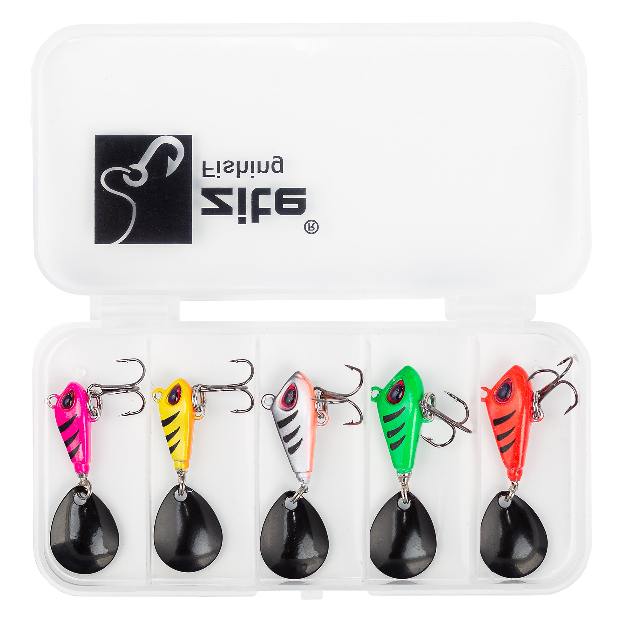 5-teiliges Spinner-Jigs Köderset von Zite Fishing für das Raubfisch-Angeln. Dieses Set beinhaltet 5 fängige Jigspinner mit 1 x 10g, 2 x 14g und 2 x 20g. Alle Köder sind mit stabilen und scharfen Drillingen ausgestattet. Jigspinner sind einst mal hauptsächlich zum Barschangeln eingesetzt worden und zählen vor allem bei dieser Angelei nach wie vor zu den Topködern. Im Laufe der Zeit und mit folgenden, größeren Versionen hat man durchaus aber auch den Reiz der Spinnköder auf Hechte, Zander und Rapfen entdeckt. Der Farbmix der Spinnerbaits ist weitläufig gehalten, um bei unterschiedlichen Gegebenheiten immer die richtige Köderfarbe dabei zu haben. Die Farben sind teils UV-Aktiv, was gerade bei bedecktem Wetter und trübem Wasser einen deutlichen Vorteil bringen kann.