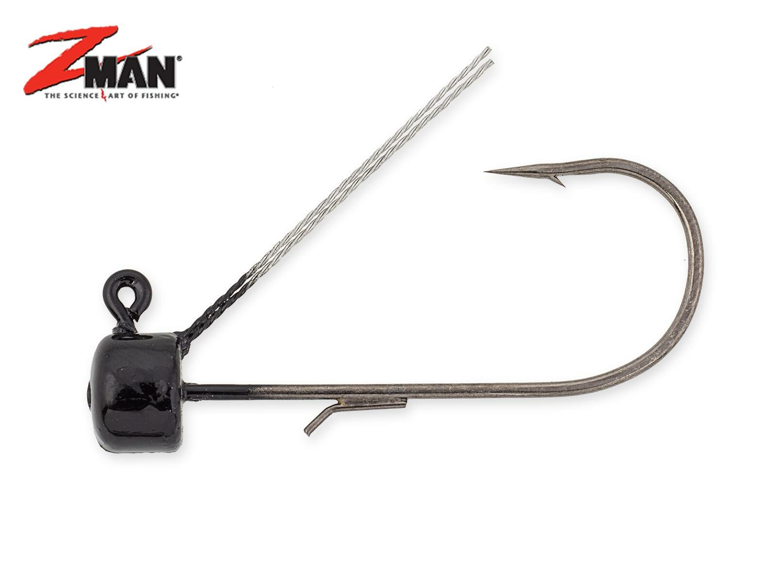 Speziell für den Einsatz mit dem XL-Ned-Rig-Köder Giant TRD hat Z-Man die Mag ShroomZ Weedless auf den Markt gebracht. Mit einer Hakengröße von 6/0 passen sie perfekt zu dem rund 15 Zentimeter langen Stickbait – und natürlich zu vielen anderen Gummiködern. Die Mag ShroomZ haben einen pilzförmigen Kopf, der den aufrechten Stand des Köders am Grund unterstützt, und sind mit einem feinen Lure Keeper aus Draht ausgestattet. Die Weedless-Variante besitzt zusätzlich zwei Drahtantennen, die als Weed Guard fungieren und den Haken abschirmen.