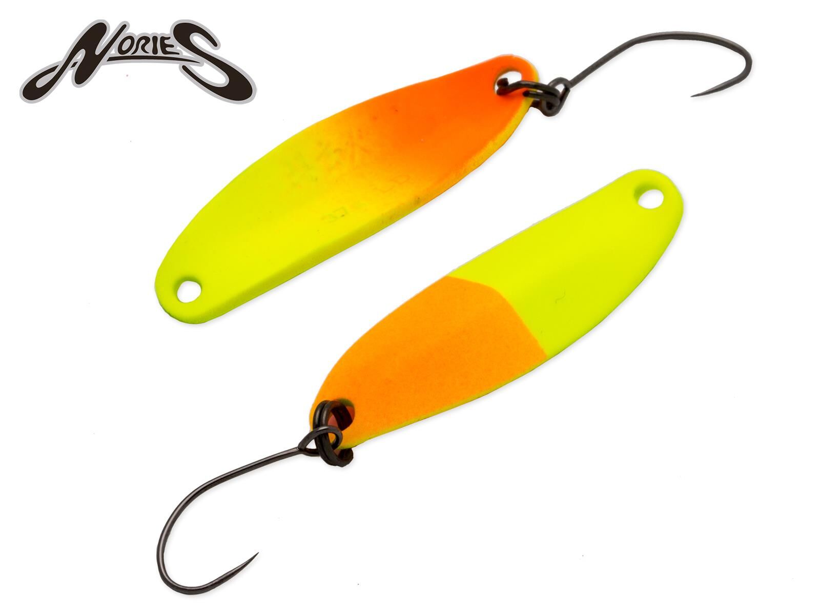 Die Masukuroto Blinker wurden speziell für die Angelei auf Forellen entwickelt. Ein besonderes Merkmal ist das Centre Flat Design , das den Wasserwiderstand auf die gesamte Fläche des Blinkers verteilt und bei langsamer sowie schneller Führung einen stabilen Lauf ermöglicht. Die Masukuroto Forellen-Blinker sind so entworfen worden, dass die Form und das Gewicht optimal harmonieren und gezielte, weite Würfe mit den leichten Ködern möglich sind. Das 3.7g Modell ist besonders für extra weite Würfe konzipiert und besitzt eine extrem starke Wobbling Action . Dieser Spoon ist sehr gut für die etwas tieferen Schichten im Gewässer geeignet. NORIES Trout Lure Center-Flat Design Dünndrähtige, stabile Einzelhaken ohne Widerhaken