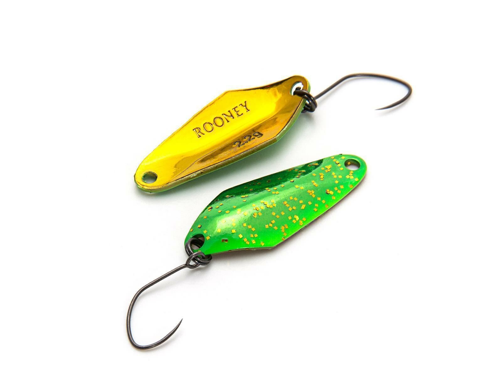Die Masukuroto Blinker wurden speziell für die Angelei auf Forellen entwickelt. Ein besonderes Merkmal ist das Centre Flat Design , das den Wasserwiderstand auf die gesamte Fläche des Blinkers verteilt und bei langsamer sowie schneller Führung einen stabilen Lauf ermöglicht. Die Masukuroto Blinker sind so entworfen worden, dass die Form und das Gewicht optimal harmonieren und gezielte, weite Würfe mit den leichten Ködern ermöglichen. Der 1.5g Masukuroto Rooney hat einen stabilen Lauf auch bei unterschiedlichen Strömungsverhältnissen. Durch Änderung der Einholgeschwindigkeit kann man den Lauf des Blinkers je nach Beißverhalten variieren. Er eignet sich vor allem zum Suchen von Forellen und um deren Aktivität zu bestimmen. NORIES Trout Lure Center-Flat Design Dünndrähtige, stabile Einzelhaken ohne Widerhaken