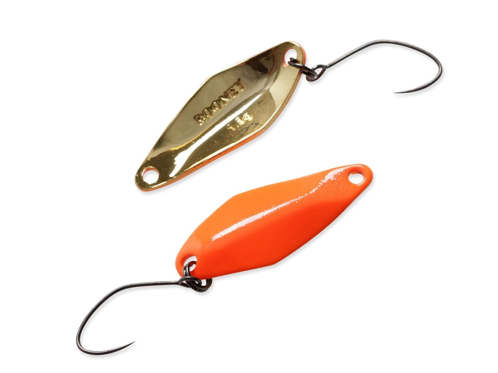 Die Masukuroto Blinker wurden speziell für die Angelei auf Forellen entwickelt. Ein besonderes Merkmal ist das Centre Flat Design , das den Wasserwiderstand auf die gesamte Fläche des Blinkers verteilt und bei langsamer sowie schneller Führung einen stabilen Lauf ermöglicht. Die Masukuroto Blinker sind so entworfen worden, dass die Form und das Gewicht optimal harmonieren und gezielte, weite Würfe mit den leichten Ködern ermöglichen. Der 1.8g Masukuroto Rooney hat einen stabilen Lauf auch bei unterschiedlichen Strömungsverhältnissen. Durch Änderung der Einholgeschwindigkeit kann man den Lauf des Blinkers je nach Beißverhalten variieren. Er eignet sich vor allem zum Suchen von Forellen und um deren Aktivität zu bestimmen. NORIES Trout Lure Center-Flat Design Dünndrähtige, stabile Einzelhaken ohne Widerhaken