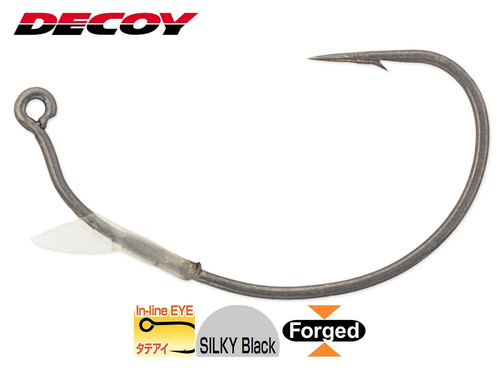Ein weiterer Spezialist aus der japanischen Hakenschmiede von Decoy: Der NK Hook Worm128 ist ein Offset-Haken, der fürs krautfreie Fischen mit dem Neko-Rig entwickelt wurde. Der extra breite Bogen und die Position des Öhrs garantieren eine perfekte Präsentation des Köders. Der Lure Keeper aus Kunststoff hält den Gummihappen sicher in Position. Jeder Packung liegen zusätzlich zwei Wirbel mit offenem Öhr bei, die bei Bedarf am Haken angebracht werden können, um eine beweglichere Köderpräsentation zu erreichen.