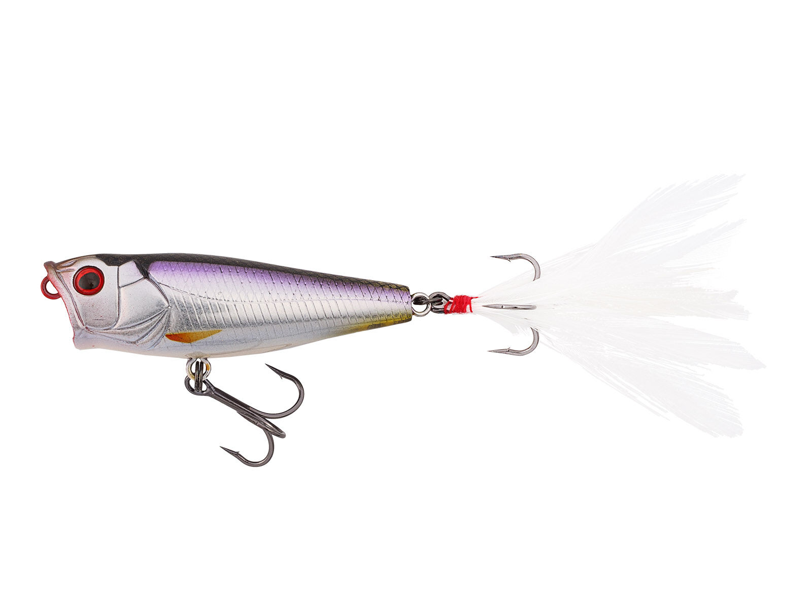 Der PP 60F Popper von ECOGEAR ist perfekt geeignet um an der Oberfläche raubende Fische, aggressive Räuber im Flachen oder in Kraut- und Seerosenfeldern zu beangeln. Bei jedem Zupfer gluckst der Popper und zieht eine Blasenspur hinter sich her, was die Räuber förmlich ausrasten lässt. Bei rhythmischen Zupfern läuft dieser Popper zudem im Walk the Dog-Stil an der Wasseroberfläche. Selbst in den Pausen lockt die Feder am hinteren Drilling noch Nachläufer aus der Reserve. Fazit: Ein Popper der Spitzenklasse!