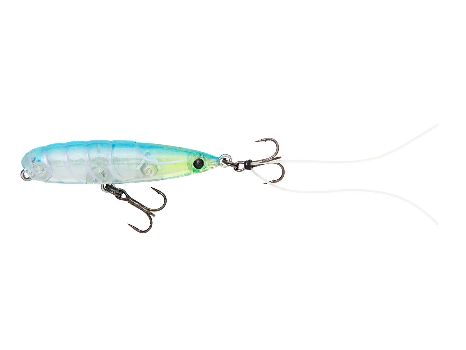 Der PX 45F ist ein kleiner Topwater Lure, der eine fliehende Garnele imitiert. Im vorderen Bereich hat er eine kleine Aushöhlung und am Enddrillling sind zwei Silikon-Fäden befestigt. Geführt wird er direkt an der Wasseroberfläche mit kleinen Zupfern, wobei er leise Plopp-Geräusche verursacht. Wichtig ist, dass der PX 45F mit dünnem monofilem Vorfach, bzw. mit eingefettetem Fluorocarbon-Vorfach ohne Wirbel & Snaps gefischt werden muß. Die feinen, aber dennoch sehr stabilen Owner-Drillinge ermöglichen auch die sichere Landung größerer Räuber. Ein sehr schöner Oberflächenköder für die leichte Barsch- und Forellenangelei!