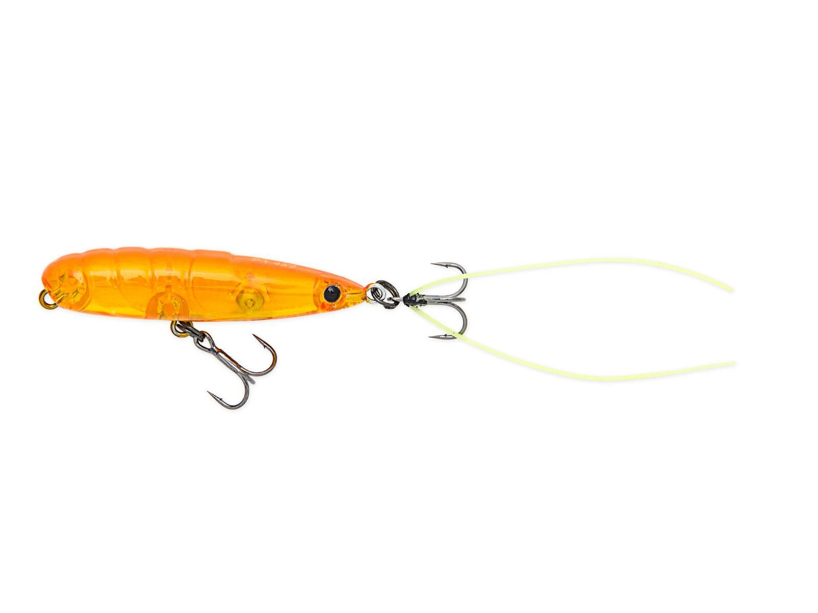 Der PX 45F ist ein kleiner Topwater Lure, der eine fliehende Garnele imitiert. Im vorderen Bereich hat er eine kleine Aushöhlung und am Enddrillling sind zwei Silikon-Fäden befestigt. Geführt wird er direkt an der Wasseroberfläche mit kleinen Zupfern, wobei er leise Plopp-Geräusche verursacht. Wichtig ist, dass der PX 45F mit dünnem monofilem Vorfach, bzw. mit eingefettetem Fluorocarbon-Vorfach ohne Wirbel & Snaps gefischt werden muß. Die feinen, aber dennoch sehr stabilen Owner-Drillinge ermöglichen auch die sichere Landung größerer Räuber. Ein sehr schöner Oberflächenköder für die leichte Barsch- und Forellenangelei!