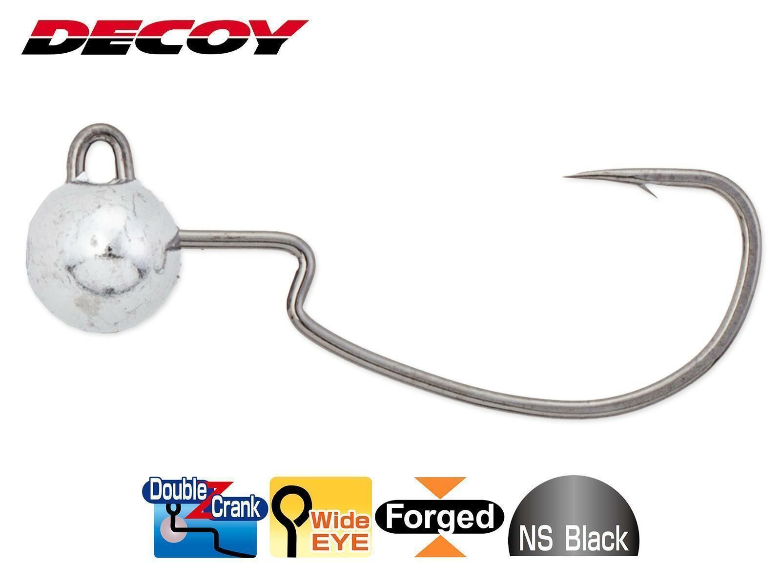 Die Rock Bomb SV-57 von Decoy macht das Weedless-Fischen einfach. Der Offset-Haken wurde hier direkt in den Bleikopf mit eingegossen. Ob Gummikrebs, Wurm, Twister oder Gummifisch mit Schaufelschwanz – alle möglichen Köder lassen sich mit der Rock Bomb sehr einfach krautfrei präsentieren. Der Football-Kopf verhindert dabei zuverlässig ein Umkippen des Köders am Grund und sorgt für eine immer aufrechte Haltung des Hakens.
