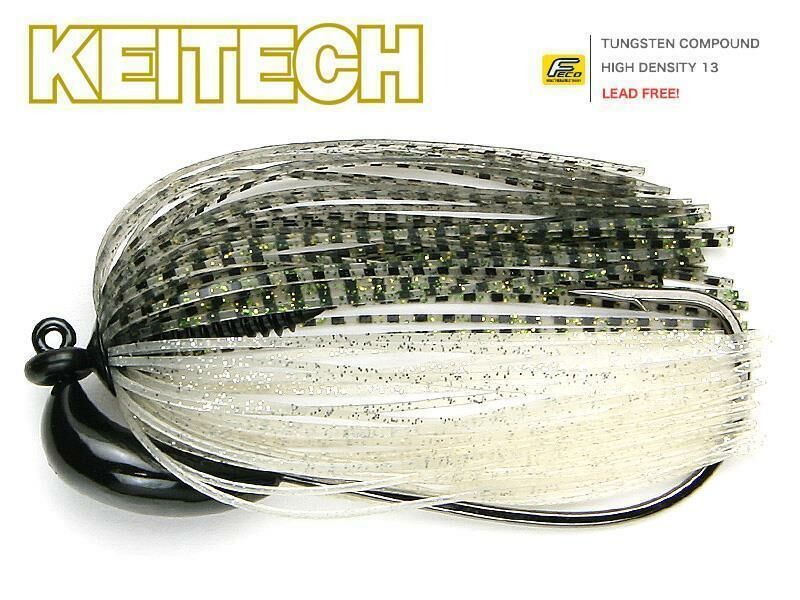 Tungsten Rubber Swim Jig – optimal für KEITECH 4.8″ FAT Swing Impact geeignet. Der Rubber Jig Model III wird als Swim Jig gefischt und kann selbst in extrem hängerreichen Gewässerabschnitten problemlos eingesetzt werden. Der Tungsten Jigkopf ist härter als herkömmliche Bleiköpfe, so dass man ein sehr gutes Gespür für die Beschaffenheit des Gewässergrundes hat. Der handgebundene Skirt ist aus hochwertigem SR-40 Silikon gefertigt. Der #5/0 Haken ist eine Spezialanfertigung für KEITECH – Made in Japan.