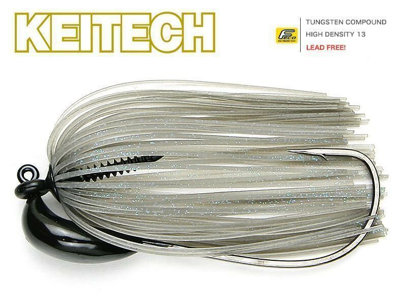 Tungsten Rubber Swim Jig – optimal für KEITECH 4.8″ FAT Swing Impact geeignet. Der Rubber Jig Model III wird als Swim Jig gefischt und kann selbst in extrem hängerreichen Gewässerabschnitten problemlos eingesetzt werden. Der Tungsten Jigkopf ist härter als herkömmliche Bleiköpfe, so dass man ein sehr gutes Gespür für die Beschaffenheit des Gewässergrundes hat. Der handgebundene Skirt ist aus hochwertigem SR-40 Silikon gefertigt. Der #5/0 Haken ist eine Spezialanfertigung für KEITECH – Made in Japan.
