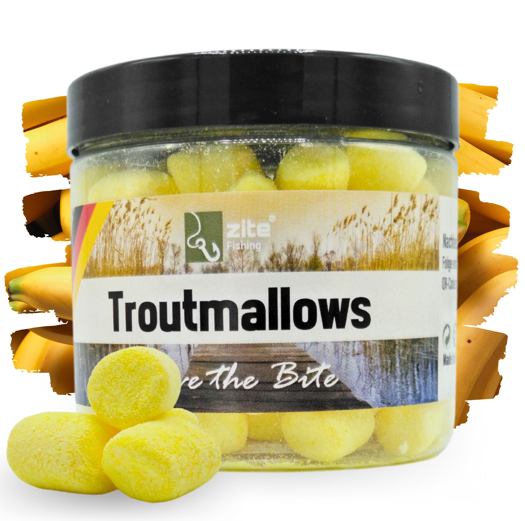 Troutmallows Forellenköder 40 g Banane Gelb Zite Fishing