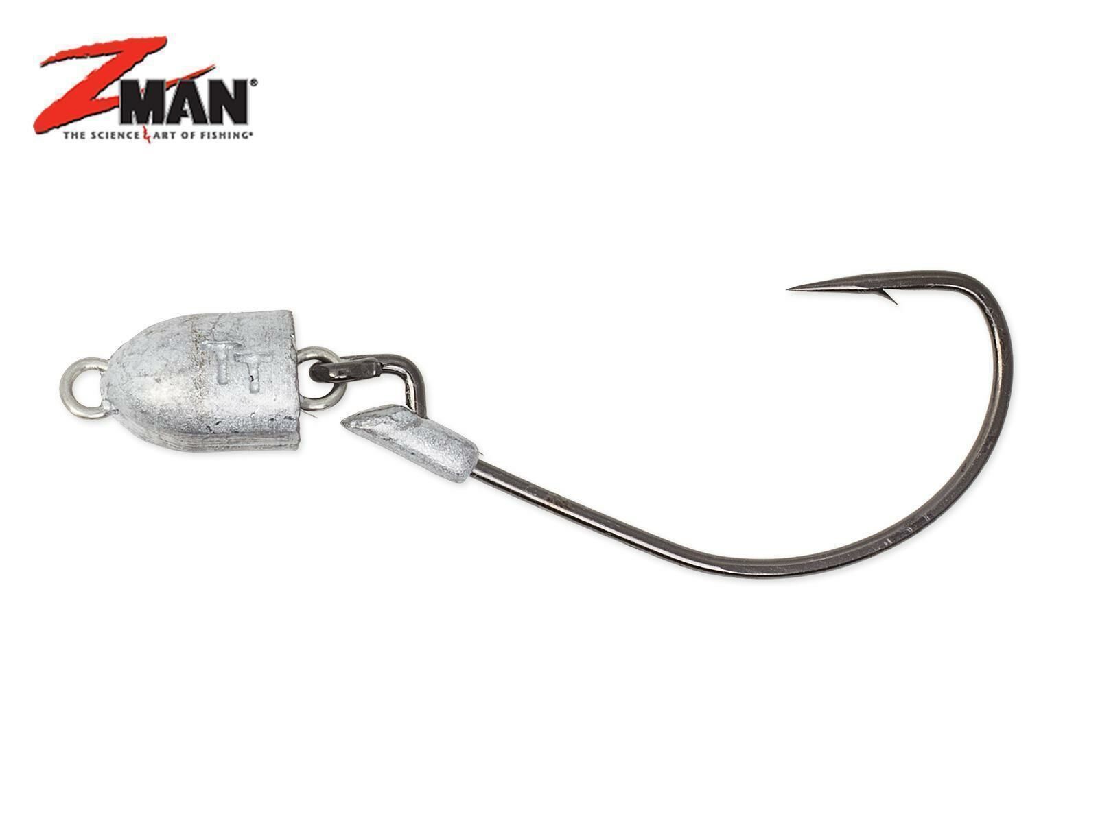 Die TT Lures SnakelockZ von Z-Man sind eine Mischung aus Weighted Offset Hook und Jigkopf. Das beweglich angebrachte Gewicht gibt dem Gummiköder viel Freiraum und lässt ihn lebhafter spielen. Swimbaits, große Krebse oder Gummiwürmer können an diesen sehr stabilen Spezial-Jigs sehr schön und hängerfrei präsentiert werden. Eine kleine, angegossene Bleinase vor dem Hakenöhr verhindert wirkungsvoll ein Verrutschen der Weichplastikhappen.