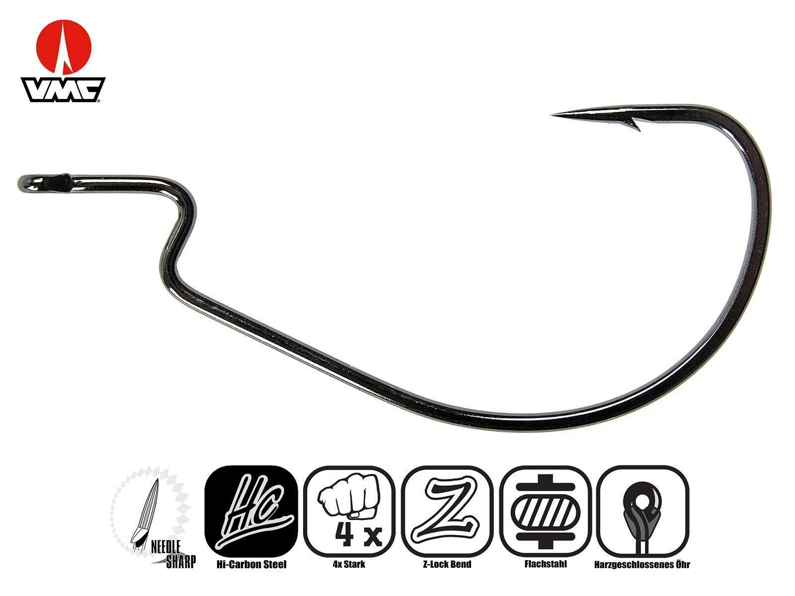 Die VMC Specimen Wide Gap Haken (7348) sind aus 4X starken Hi-Carbon Stahl gefertigt und eignen sich somit bestens für kapitale Raubfische wie Hecht, Wels oder Dorsch. Mit den Hakengrößen 7/0 – 10/0 lassen sich die großen Swimbaits von 6.5″ bis 8″ (17 – 21 cm) perfekt anködern. Um zu gewährleisten, dass die Schnur nicht durch das Öhr rutscht, wurde dieses zusätzlich mit Harzkleber versiegelt.