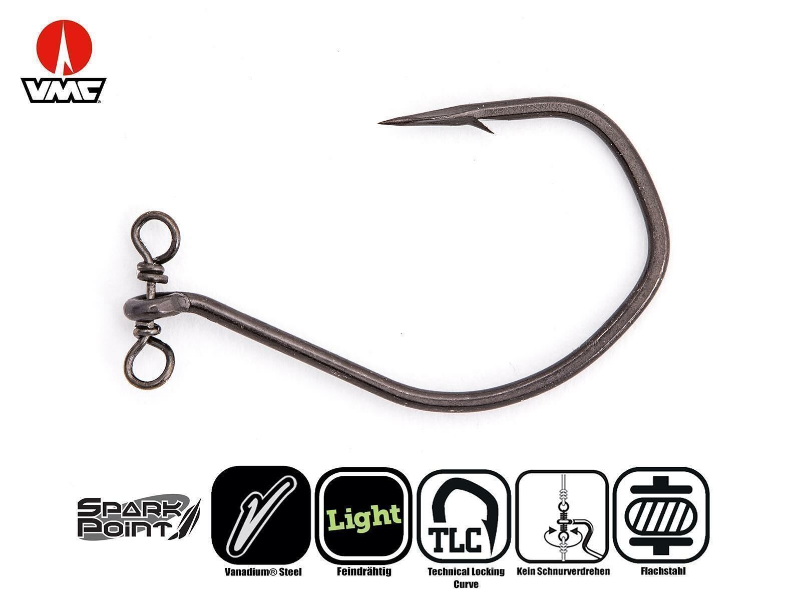 Die VMC Spinshot DS Haken sind speziell für das Drop Shot Angeln entwickelte Haken. Der eingearbeitete Wirbel verhindert zuverlässig ein Verdrallen des Vorfaches und gibt dem Drop-Shot-Köder größtmögliche Bewegungsfreiheit. Die Spark Point Hakenspitze ist chemisch geschärft und fasst zuverlässig im Fischmaul. Zudem können die VMC Spinshot DS Haken bei Hechtgefahr sehr einfach mit Stahl- oder Titanium-Vorfach gefischt werden. Farbe: Black-Nickel
