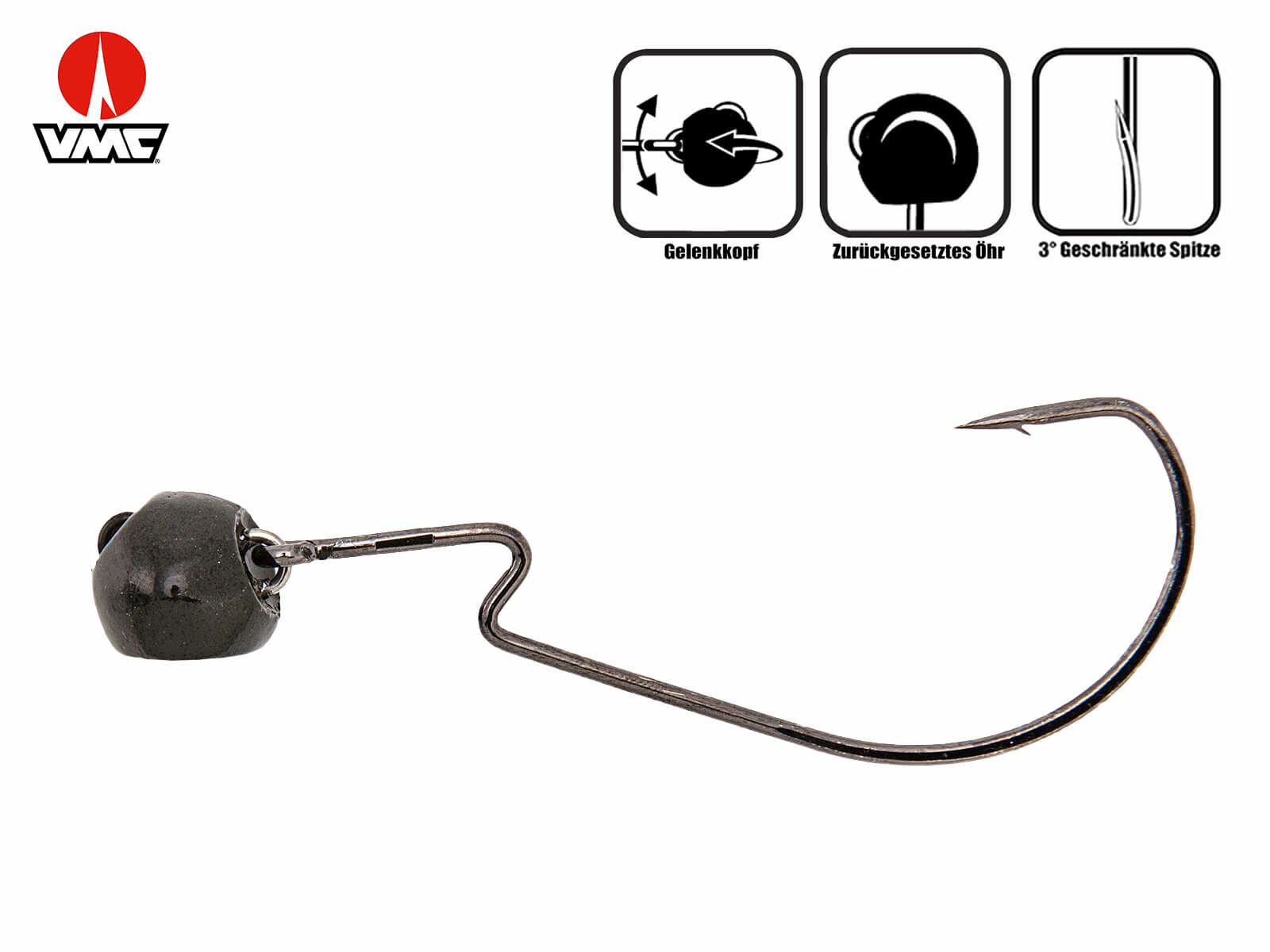 Die VMC Mystic Swingin Rugby Jigs (7320SJ) bestehen aus einem Wide Gap Haken, der beweglich an einem Bleikopf montiert ist. Dies ermöglicht dem Gummifisch ein lebhafteres Spiel. Die Hakenspitze ist extrem scharf, 3° geschränkt und fasst so zuverlässig im Fischmaul.