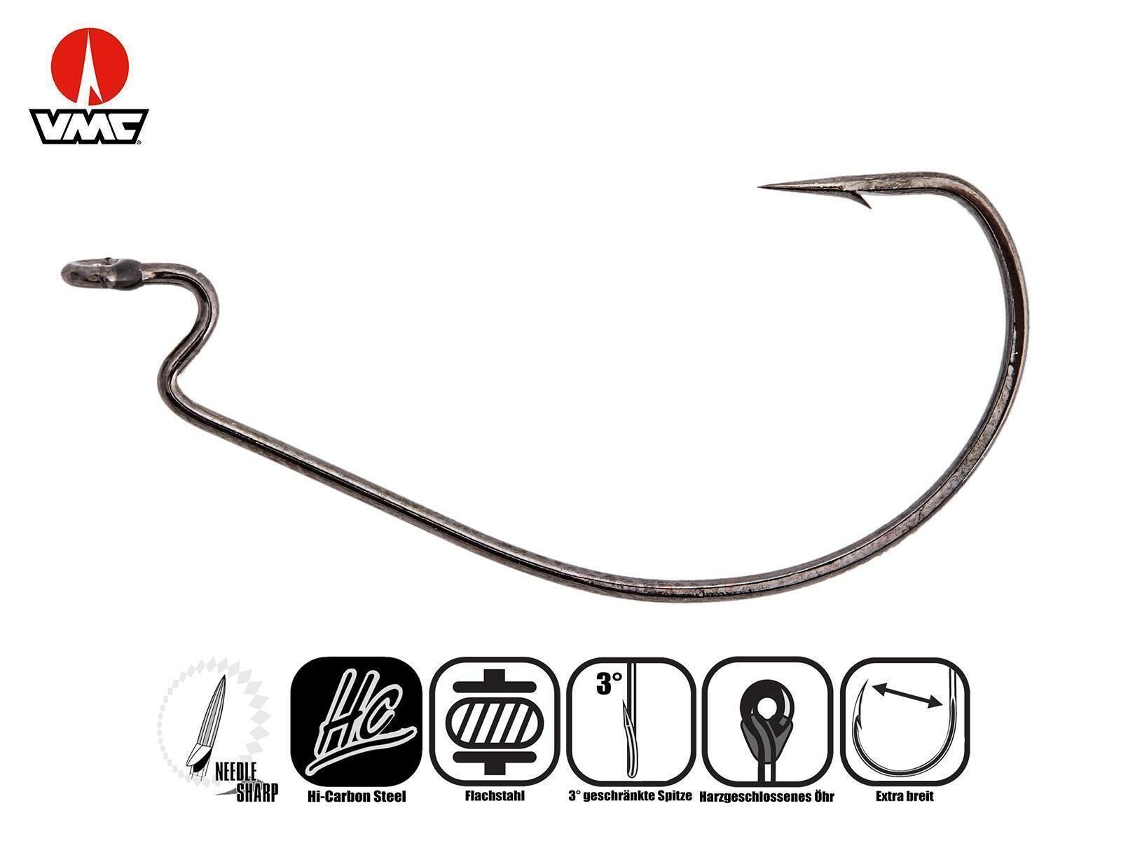 Die VMC Strategik Wide Gap Haken (7342WG) haben eine um 3° geschränkte Hakenspitze, damit der Haken besser im Fischmaul greift. Zudem ist das Hakenöhr mit Epoxy versiegelt, so dass die Vorfachschnur optimal geschützt ist und nicht durchrutschen kann.