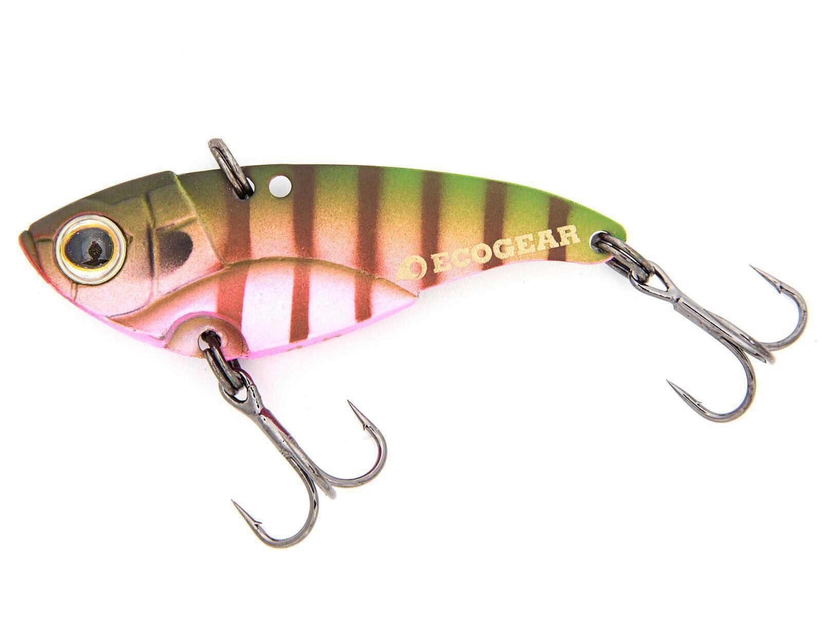 Der VX40 von ECOGEAR ist ein Blattpilker, der sich besonders für die gezielte Barsch-, Zander- und Rapfenangelei eignet. Er hat zwei Einhängeösen – die vordere wird gewählt, wenn man den VX40 auswirft, die hintere ist für den vertikalen Einsatz gedacht. Der VX40 erzeugt beim Einholen starke Druckwellen, die die Seitenlinie der Räuber anspricht. Das metallische Dekor reflektiert unter Wasser und sorgt für zusätzliche optische Reize. Die hochwertige Verarbeitung und Qualitätskomponenten, wie z.B. Owner-Drillinge heben den VX40 deutlich von der Konkurrenz ab.
