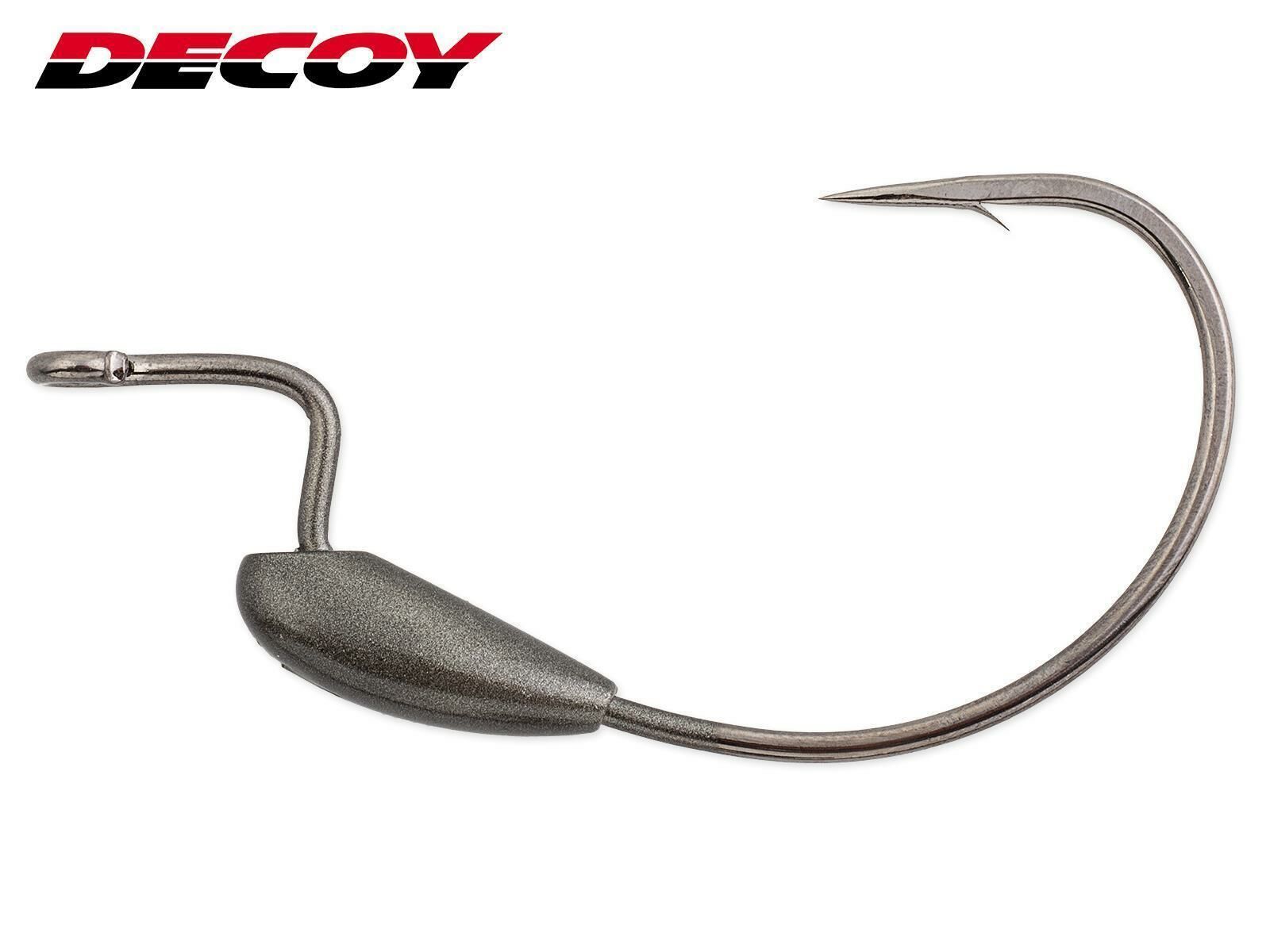 Der Weighted Magnum Worm 126 von Decoy ermöglicht die krautfreie Montage großer Gummiköder. Vor allem Hechtangler schätzen den stabilen, mit einem weiten Bogen ausgestatteten Weighted Offset Hook aus Japan. Die Haken sind bereits beschwert mit 5, 9 oder 14 Gramm. Pfiffig: Form und Platzierung des Gewichts stützen den Gummiköder und halten ihn in Position. Decoy-typisch ist die Verarbeitung natürlich tadellos.