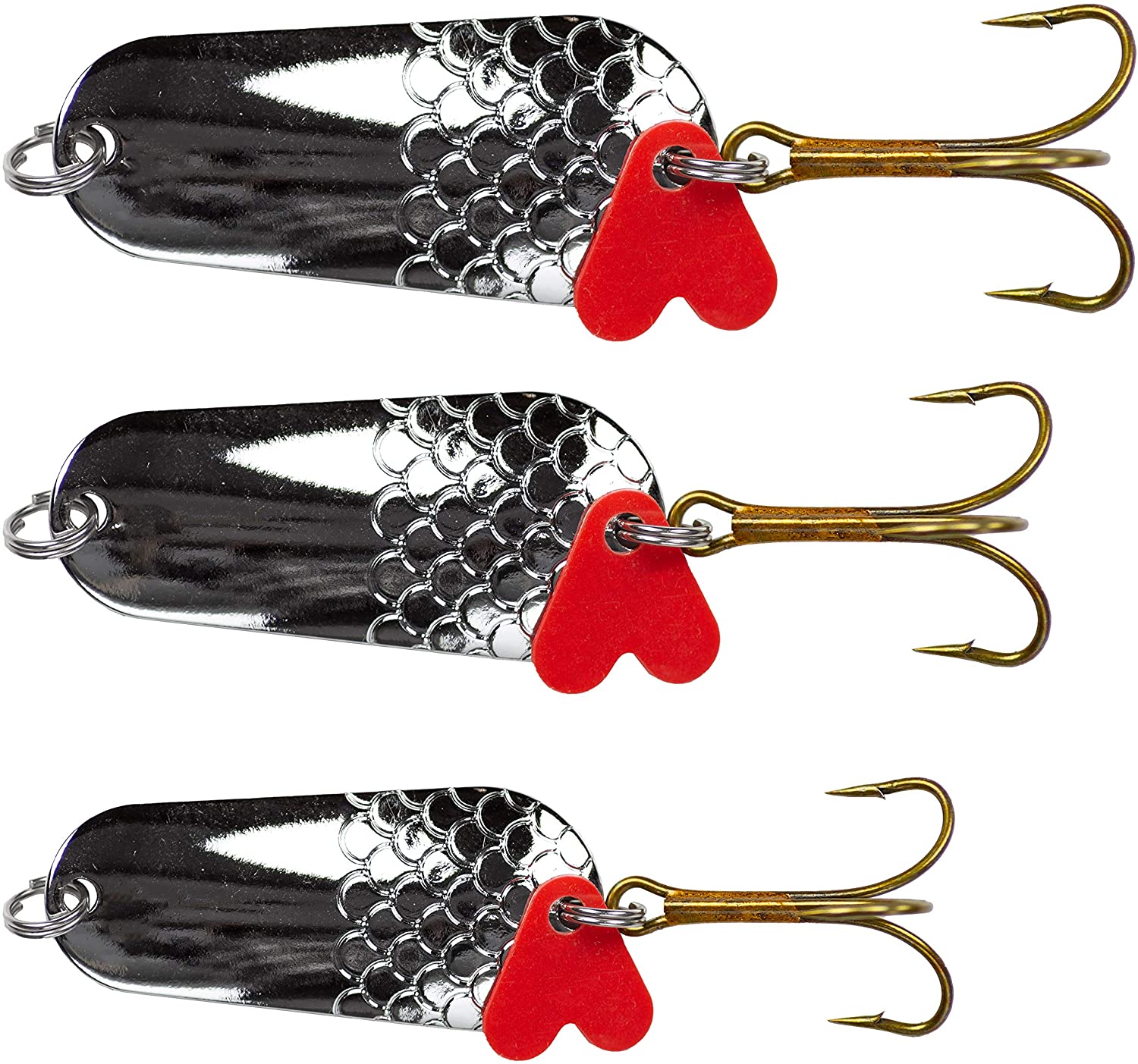 Blinkerset für den Raubfisch-Angler von Zite Fishing. Dieses Kunstköder-Sortiment enthält 3 verschiedene Angelköder in Silber. Die Gewichte der Löffelblinker sind 16g, 26g und 34g. Es handelt sich hierbei um den absoluten Klassiker unter den Hecht-Ködern, mit dem man durch die unterschiedlichen Größen aber auch wunderbar auf Barsch und Zander angeln kann. Old but gold funktioniert der klassische Spoon auch heute noch super auf Raubfische und wird daher nach wie vor sehr gerne gefischt. Wer eine breite Range an Gewichten abdecken will, ist mit diesem Sortiment richtig bedient. Denn dieses enthält von der kleineren 16 g Variante für die leichteren Tage mit der schweren 34 g Variante auch durchaus einen Blinker für die kapitaleren Vorhaben. Um den Lockreiz bei diesem Köder zusätzlich zu erhöhen, hat man diesem noch jeweils eine rote Lockfahne aus Kunststoff verpasst. Diese soll einen entsprechend attraktiveren optischen Reiz auf den Fisch ausüben und flattert mit dem taumelnden Blinker zusätzlich durch das Wasser.